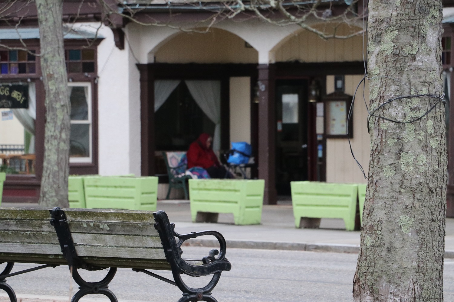 HN NOTES: The above and following photos were taken this past Monday shortly after daybreak. The first two photos were made on the Hyannis Village Green. The third photo was made moments thereafter, a short distance away from the village green on Main Street. I had been driving along in both instances, when I suddenly noticed one and then another of these two blurry homeless women in the corner of my eye. Both just sitting there alone in obvious despair. In both cases my conscious wouldn’t let me keep driving by… and I knew I couldn’t get too close because I’m taken care of my elderly parents and need to limit potential exposure to the Coronavirus… but I felt the need to document their situation in the same way I had first noticed them, as blurry images in the corner of my passing eye…
