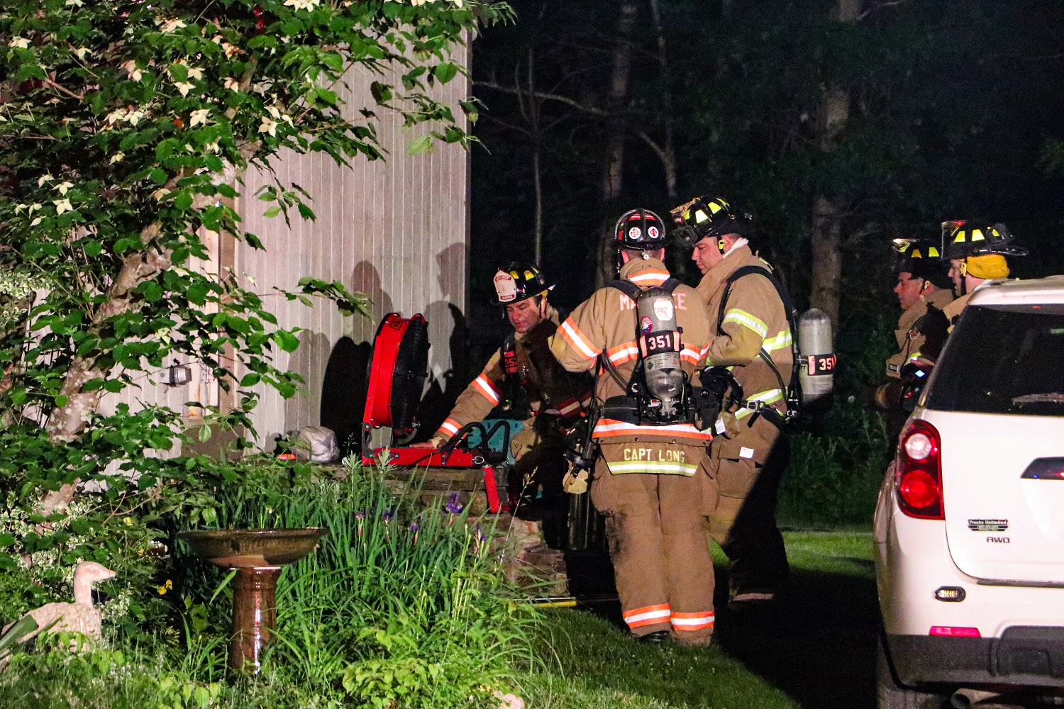 HN PHOTO: Mashpee firefighters ventilate home that filled with smoke after a water heater burned out early this morning in their town.