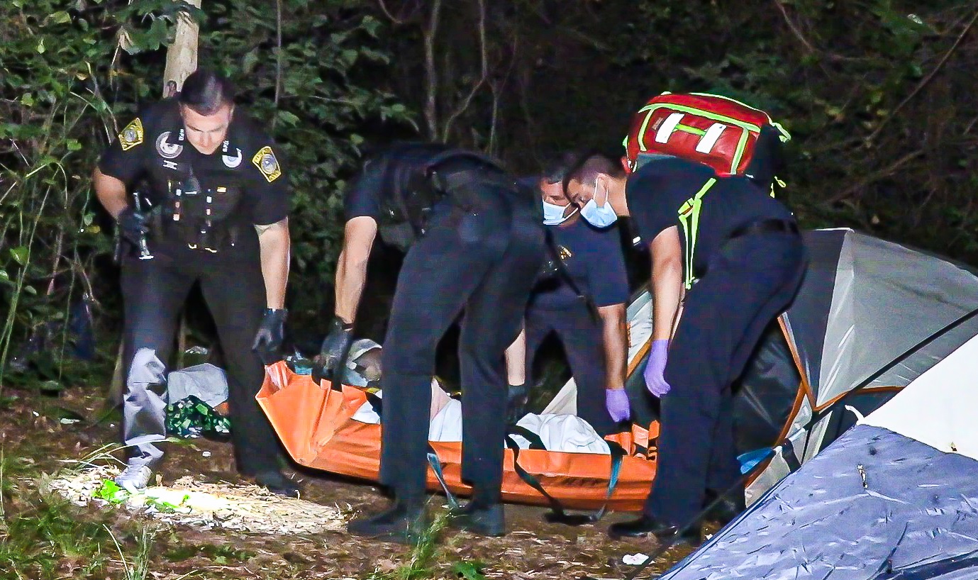 HYANNIS – Police and firefighters found the middle-aged woman in agonizing pain, suffering inside a small tent at about 2:45 a.m. this morning. She was completely isolated and unable to walk, experiencing unbearable hip pain. The tent was found in squalor, in an isolated unsanitary camp far from everything, including clean running water or bathroom facilities.