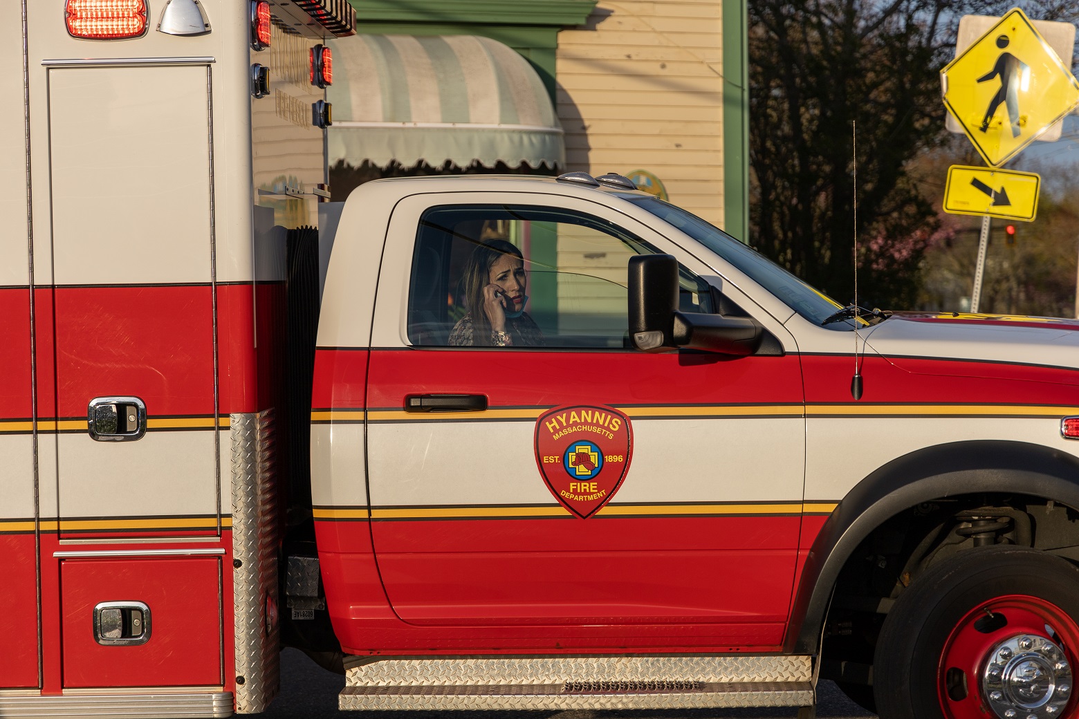 Another woman who was apparently with the victim, sat in the front seat of the Hyannis FD ambulance, obviously very worried about the patient’s condition…