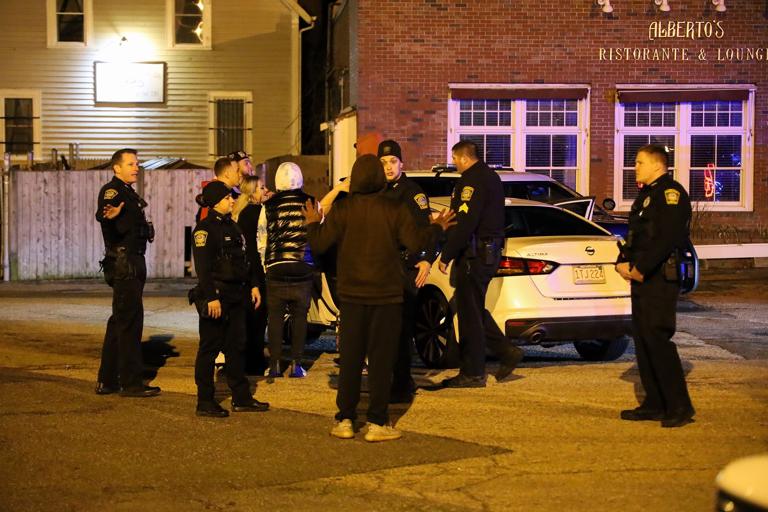 HYANNIS – The following HN Photos illustrate something local police deal with just about every evening. Quite often tempers flare after an evening of libations, as was the case early this morning in a parking lot on North Street. A nearby bar had just closed its doors as a Barnstable Police sergeant radioed that there was another fight. (Minutes earlier, officers had stood by and kept the peace after another apparent skirmish…) As skirmishes go, these were very minor and no arrests were made. Just a few instances of heated animation…
