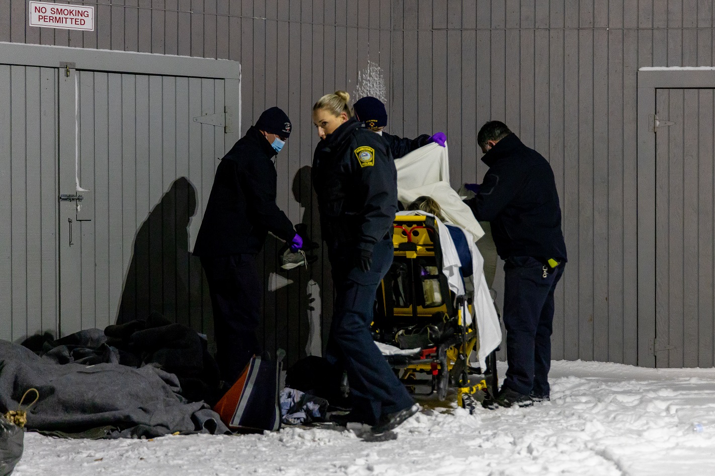 But last evening’s extreme cold was a different story. Officers noticed the female suffering from obvious signs of hypothermia. She complained about her feet being cold and wet. Her lips were reportedly turning blue. From where I was standing, she appeared to be shivering and sounded confused and disoriented. Despite not initially being open to help, officers hung in there, eventually gaining the couple’s trust.