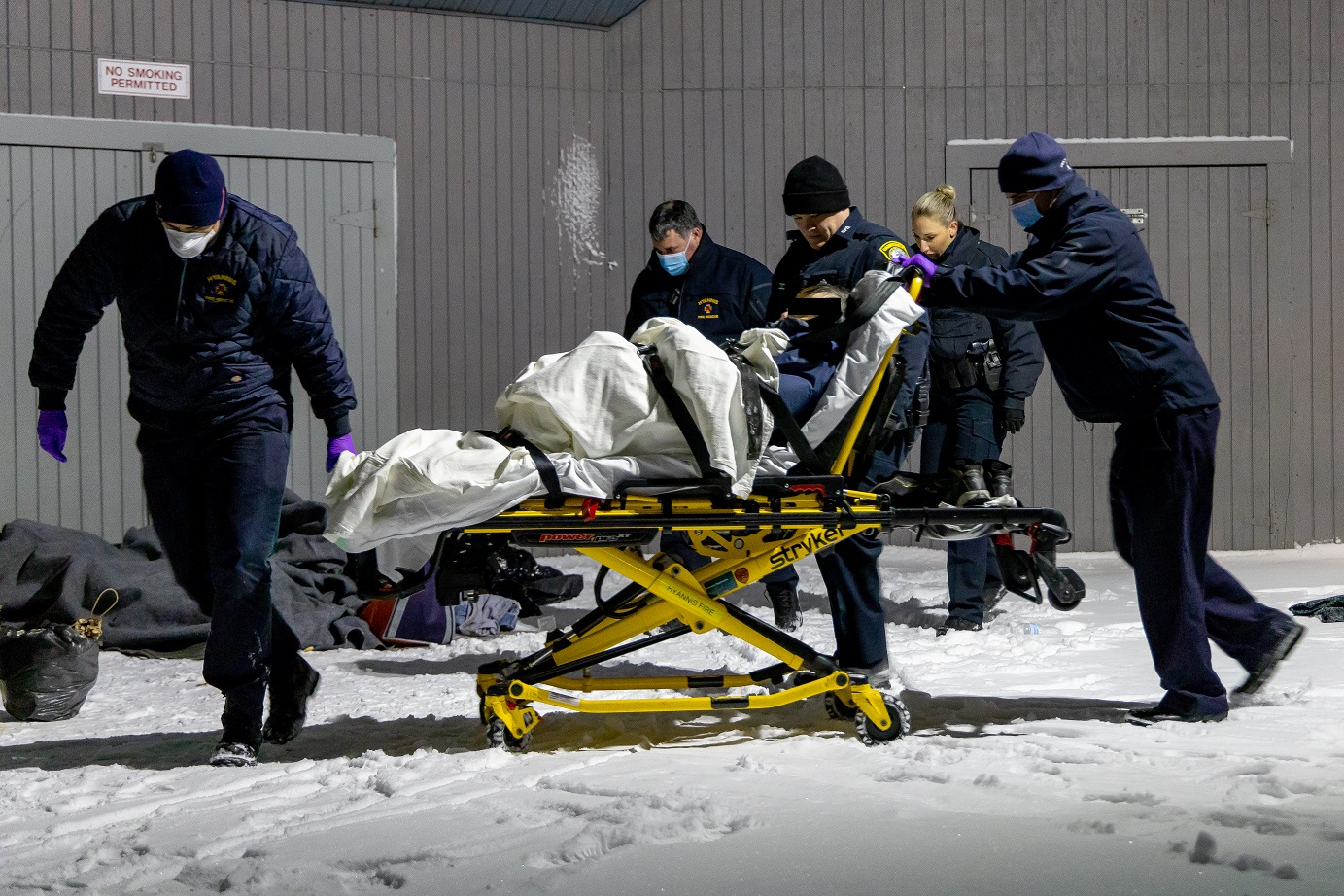 The female agreed to be transported to Cape Cod Hospital for treatment for hypothermia. The male eventually allowed Hyannis Fire Department to transport him to a warming shelter.