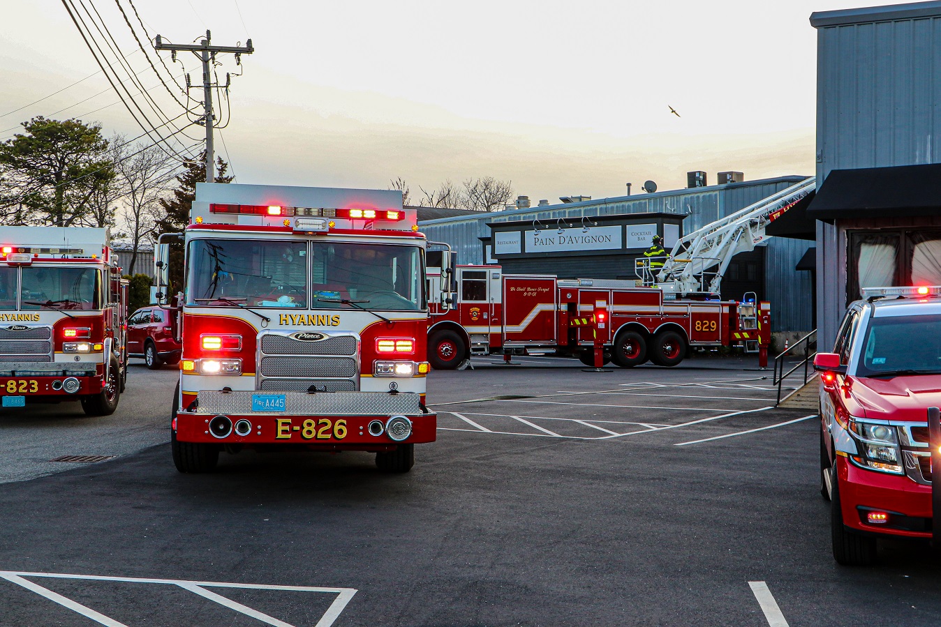 HYANNIS – Around 6:30 p.m., Hyannis firefighters responded to Pain D’Avignon on Hinckley Road for a fire in the bakery. Upon arrival, crews began investigating a smoke condition inside the building. A ladder was extended to the roof to investigate. It is believed there had been a fire in a oven’s chimney. No further information available at the time of this report.