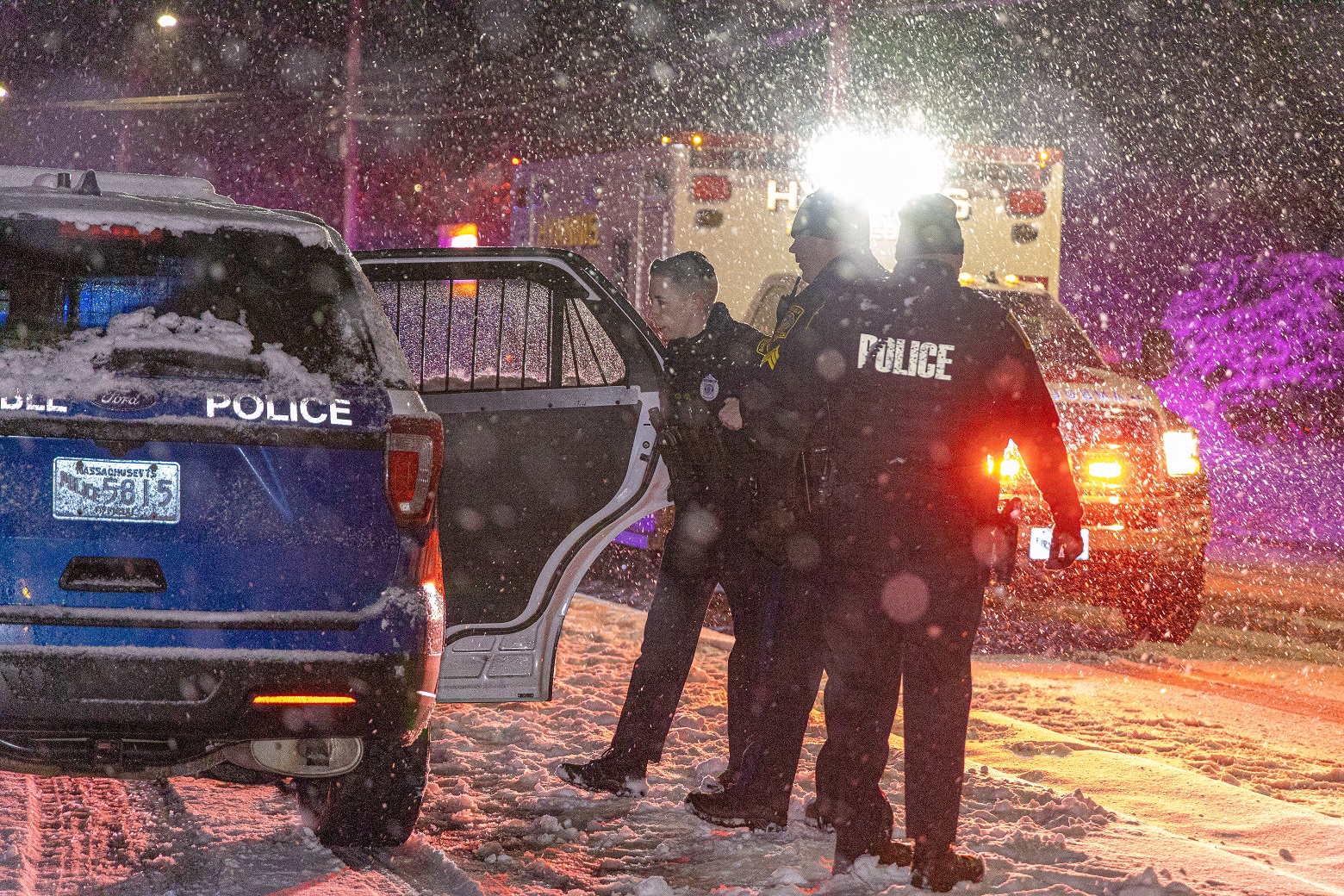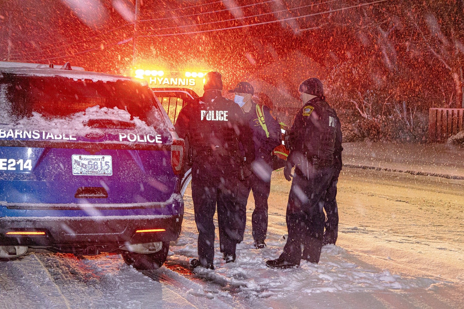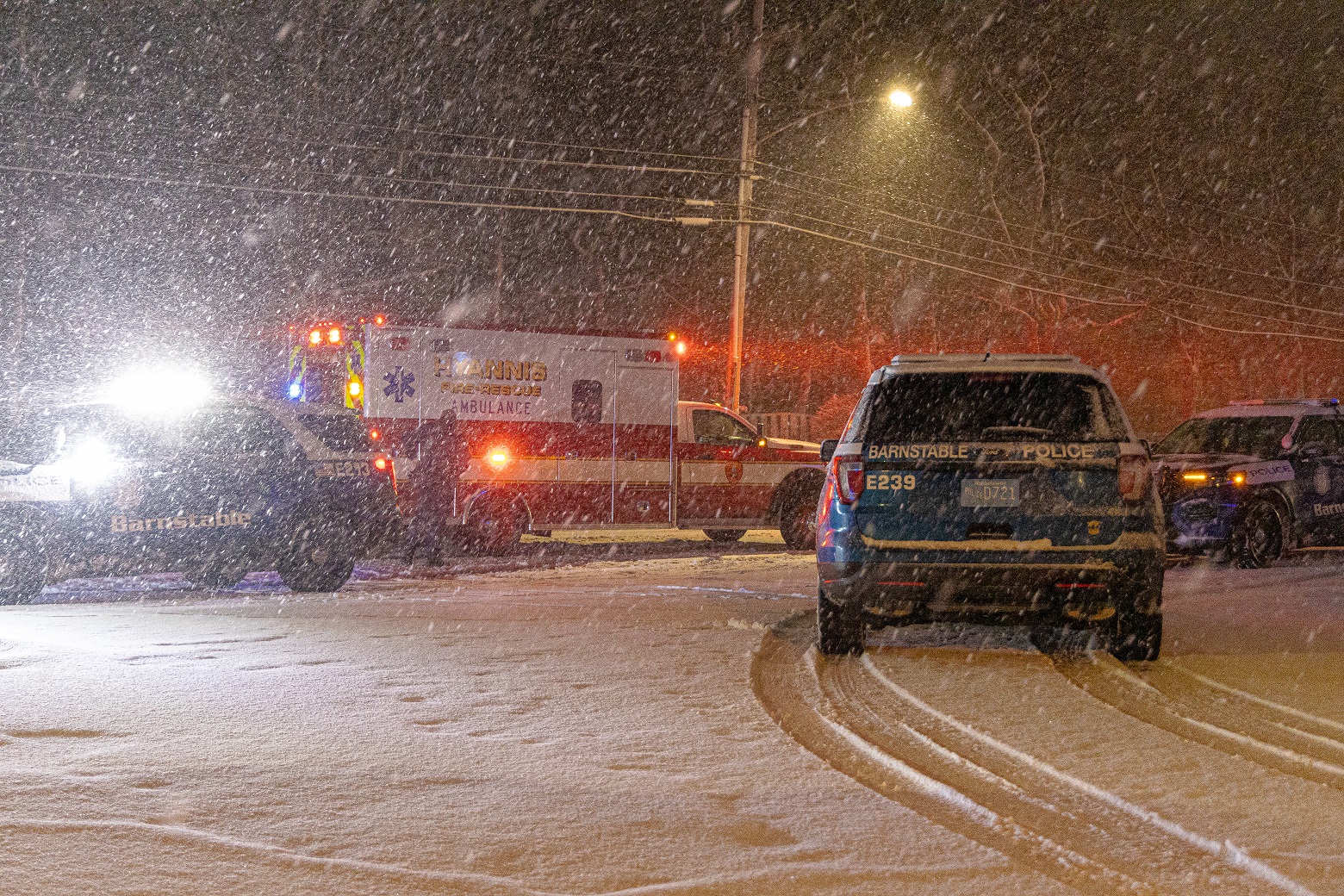 HYANNIS – Barnstable Police and two Hyannis FD ambulances responded to West Main Street around 2:00 a.m. this morning after a woman called stating she had been “attacked” by a man she knew and that she had been trying to get away, according to radio transmissions. First responders met the woman outside in the snow in front of Hyannis Honda. The woman in her late 20s was suffering superficial stab wounds to her hand and leg, according to additional radio transmissions. She was placed in the first ambulance on scene and eventually transported to Cape Cod Hospital. Her bleeding was described as being under control and vital signs were described as “stable…”