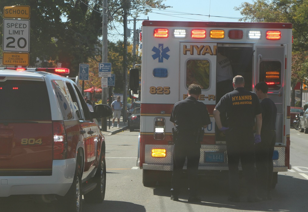 Photo: Hyannis Rescue transported a young woman from the area of the Hyannis Post Office to Cape Cod Hospital for a “head injury.” The woman claimed she had been the victim of an assault and battery. Barnstable Police are investigating.