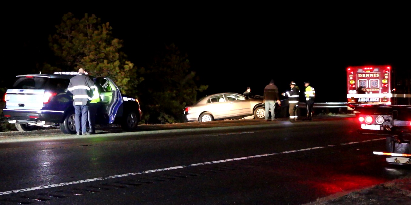 Above photos: State Police are investigating an accident where a vehicle struck a guardrail while traveling eastbound on Route 6 between Exits 9A & 9B in Dennis at about 1:00AM this morning. There were no serious injuries according to sources at the scene…