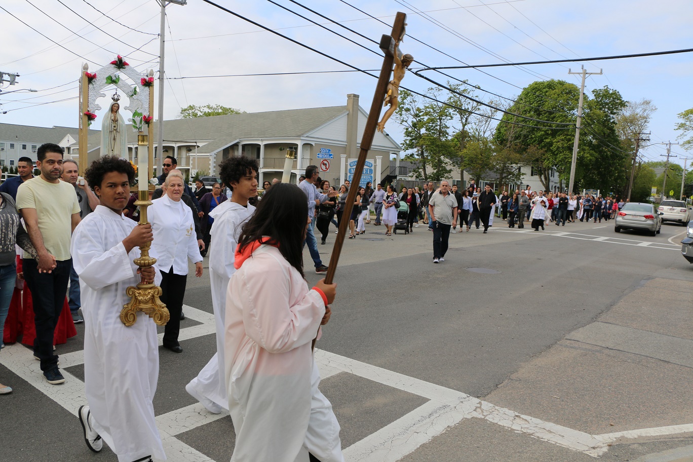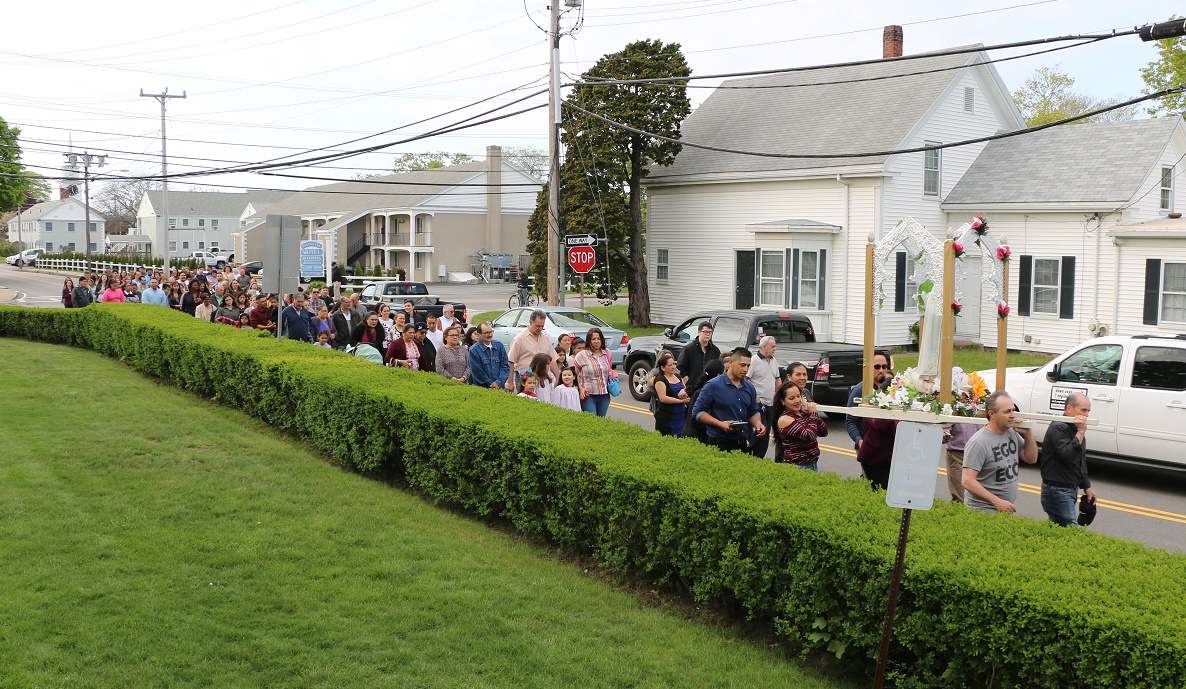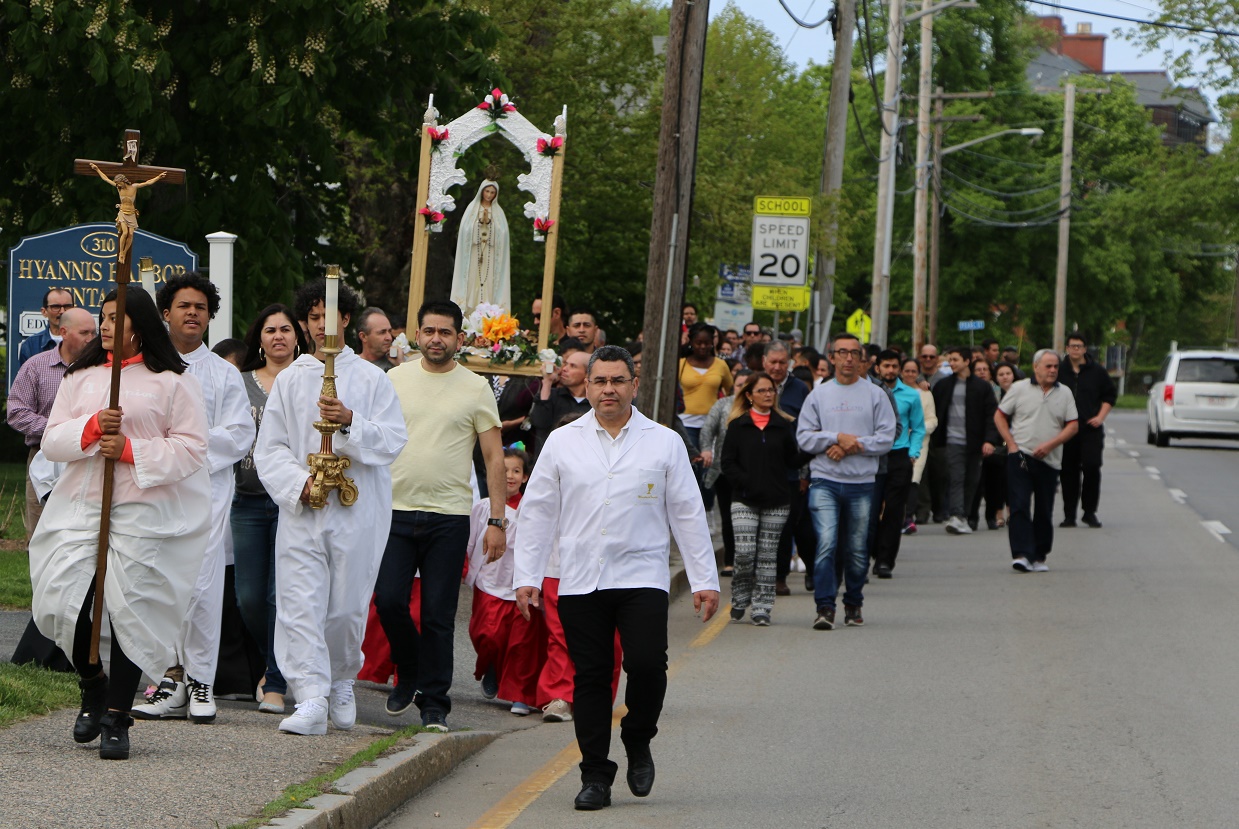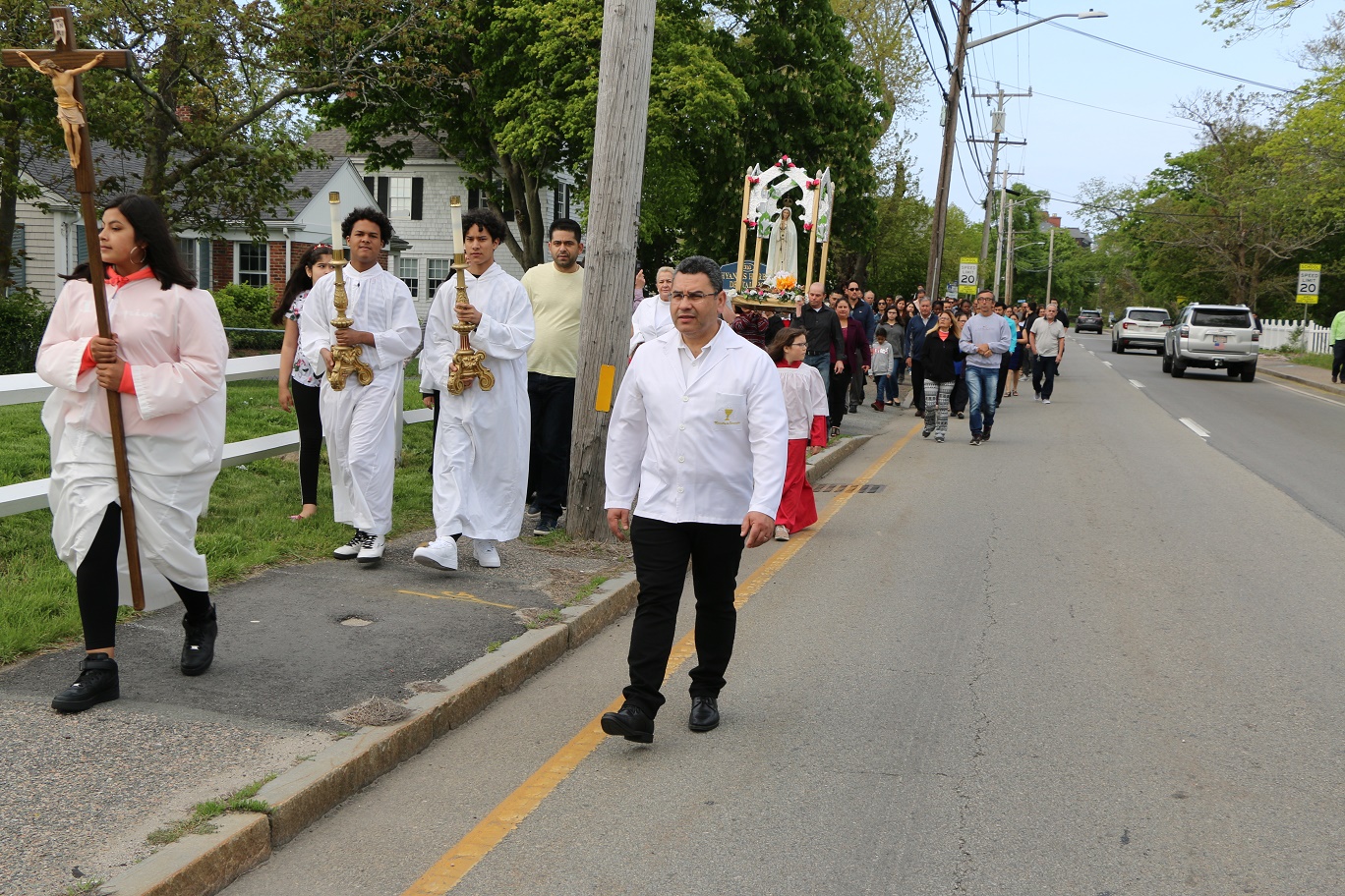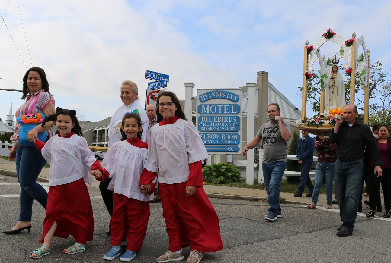 HN PHOTOS: Saint Francis Xavier parishioners from the Spanish, Portuguese, and English speaking masses joined together for a procession carrying a statue of the Virgin Mary down South Street in Hyannis this afternoon at about 5:00 p.m..