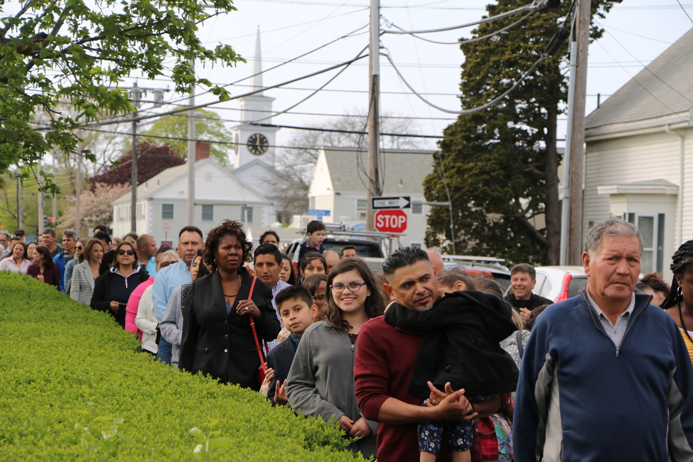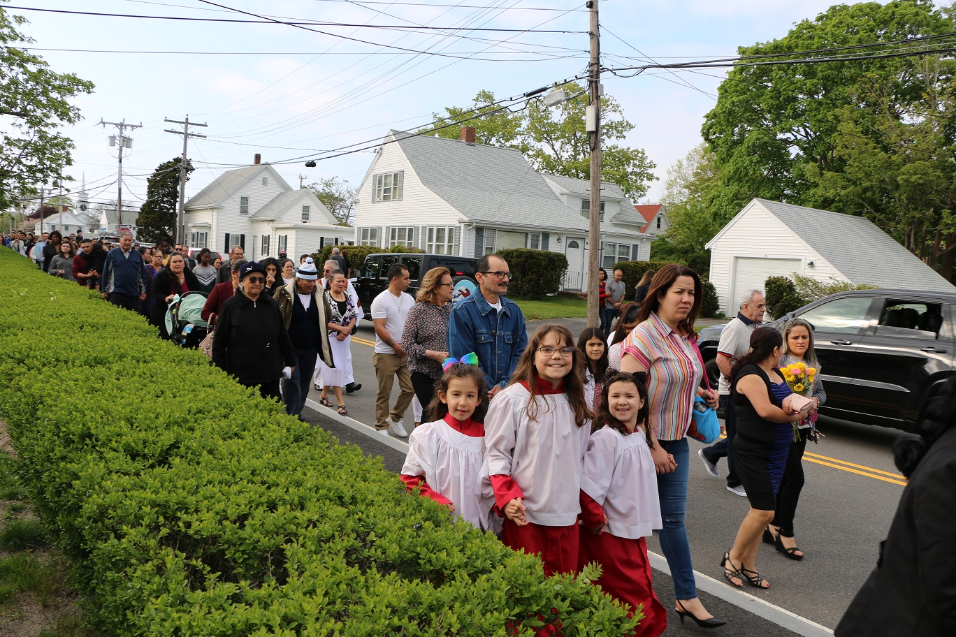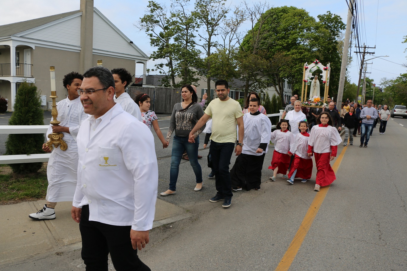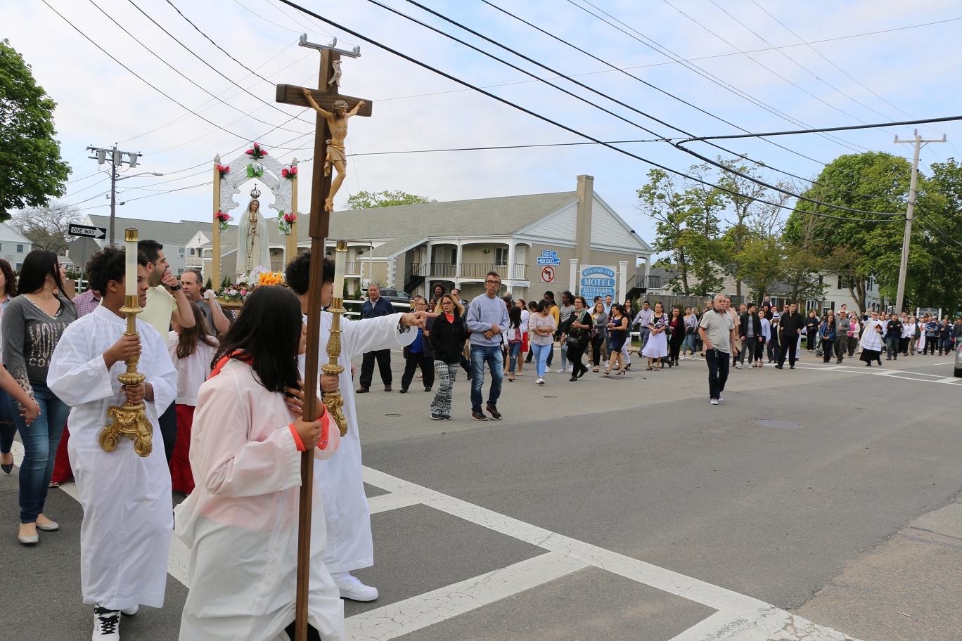 HN PHOTOS: Saint Francis Xavier parishioners from the Spanish, Portuguese, and English speaking masses joined together for a procession carrying a statue of the Virgin Mary down South Street in Hyannis this afternoon at about 5:00 p.m..