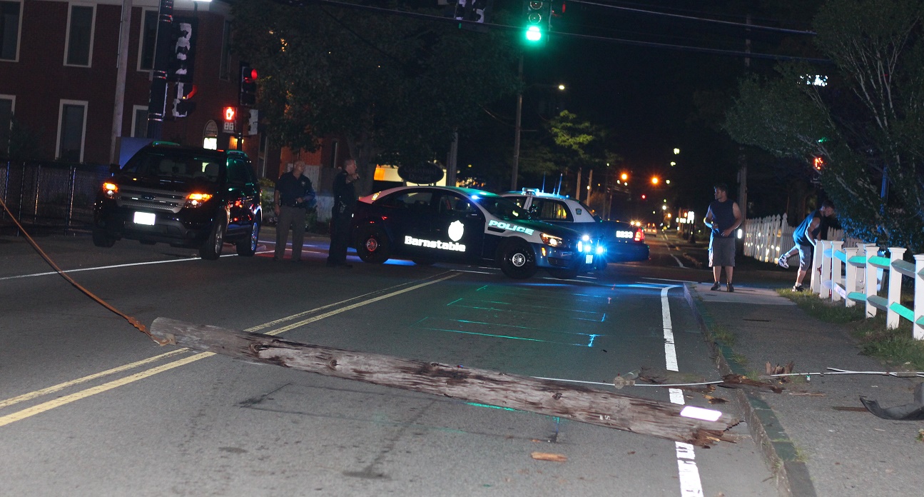 HYANNIS – North Street was shut down for a period of time last evening when a woman became disoriented and drove her vehicle into a utility pole support pole on the opposite side of the street. Her vehicle continued on for a couple hundred feet and leaving the support pole across the roadway, blocking traffic. The woman was not injured and the road remained closed as Eversource Energy repaired the pole.
