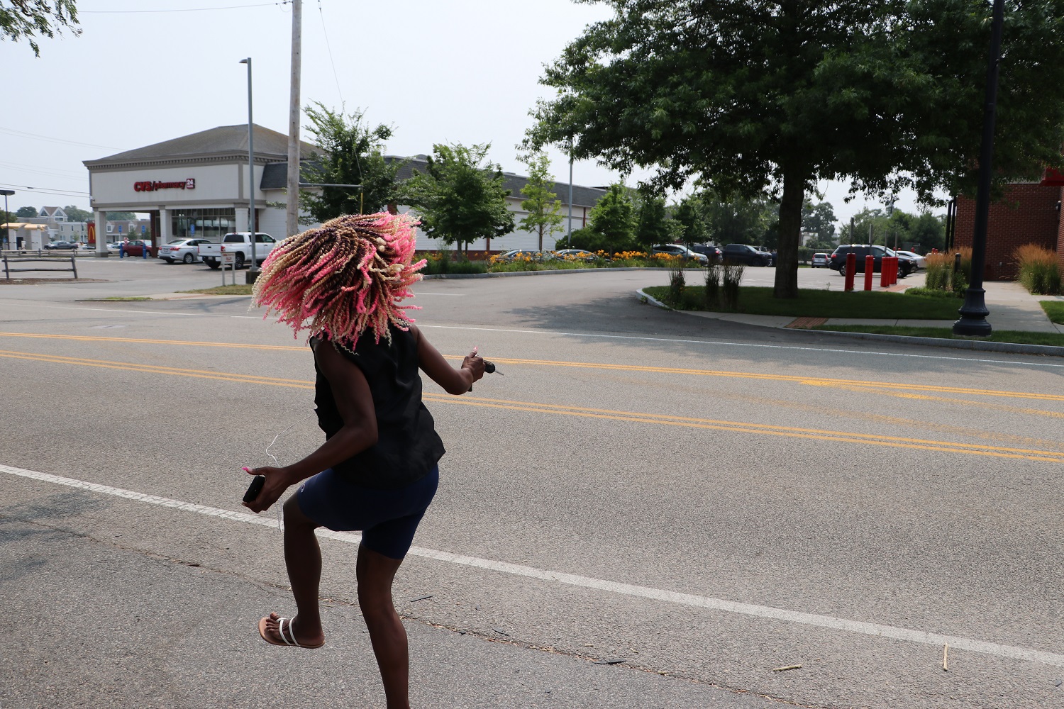 HYANNIS – This woman was grooving to her music on High School Road yesterday afternoon. She was one hell of a dancer – others thought so as well – and she gave HN permission to take her picture from the side, but was too bashful to smile for the camera today. Maybe next time… ?