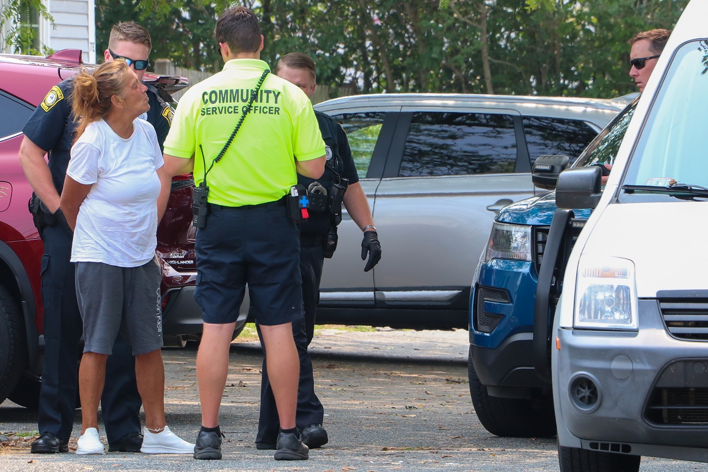 One officer then dumped out an open bottle of hard liquor that may have belonged to the woman. She was transported back to BPD Headquarters for booking and processing.
