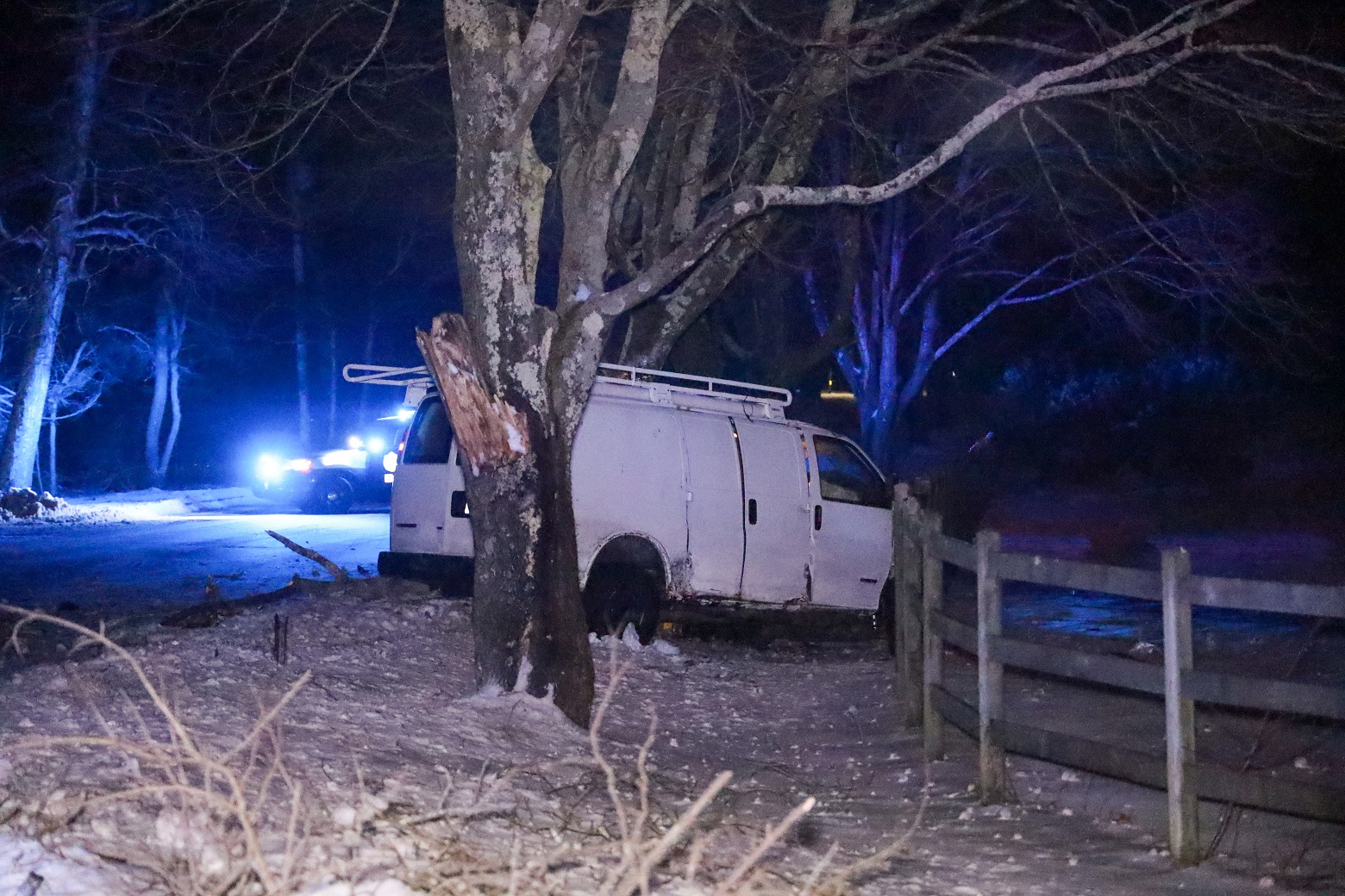 Personnel from the Barnstable Police Department and the Centerville-Osterville-Marstons Mills Fire Department arrived on scene to find that a white work van had left the roadway and collided with a tree.