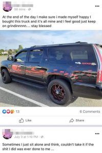As HN was processing the video and photos, a possible connection was made between the completely trashed Suburban on Somerset Road and a recent photo delivered confidentially to HN regarding a Chevy Suburban possibly involved in last Wednesday’s stabbing – 7/15/2020 – in West Dennis. They definitely appear as if they could be the same vehicle. I’ve included the images received confidentially from a person/source who had been following the West Dennis stabbing story. The images were recently downloaded from the personal Facebook page of a person of interest. (HN NOTE: The subject related to the following images has not been charged with a crime and it’s unknown if he was actually involved in the stabbing or not… but his name comes up on police radio transmissions at both crime scenes. Also note, all individuals are presumed to be innocent until charged with a crime and found guilty in a court of law…)