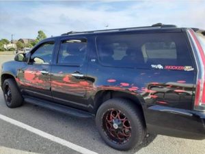 As HN was processing the video and photos, a possible connection was made between the completely trashed Suburban on Somerset Road and a recent photo delivered confidentially to HN regarding a Chevy Suburban possibly involved in last Wednesday’s stabbing – 7/15/2020 – in West Dennis. They definitely appear as if they could be the same vehicle. I’ve included the images received confidentially from a person/source who had been following the West Dennis stabbing story. The images were recently downloaded from the personal Facebook page of a person of interest. (HN NOTE: The subject related to the following images has not been charged with a crime and it’s unknown if he was actually involved in the stabbing or not… but his name comes up on police radio transmissions at both crime scenes. Also note, all individuals are presumed to be innocent until charged with a crime and found guilty in a court of law…)