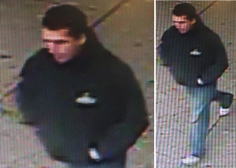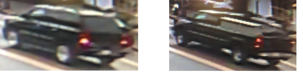 Surveillance video obtained by Detectives captured the suspect entering and exiting the bank… Detectives are also interested in talking with two potential witnesses to include the operators and/or owners of two motor vehicles that were driving by the bank at the time of the robbery (5:20PM). The vehicles are described as a dark colored full size SUV such as a Chevy Tahoe or GMC Yukon, and a full size pick-up truck with diamond plate tool boxes on each side of the bed.