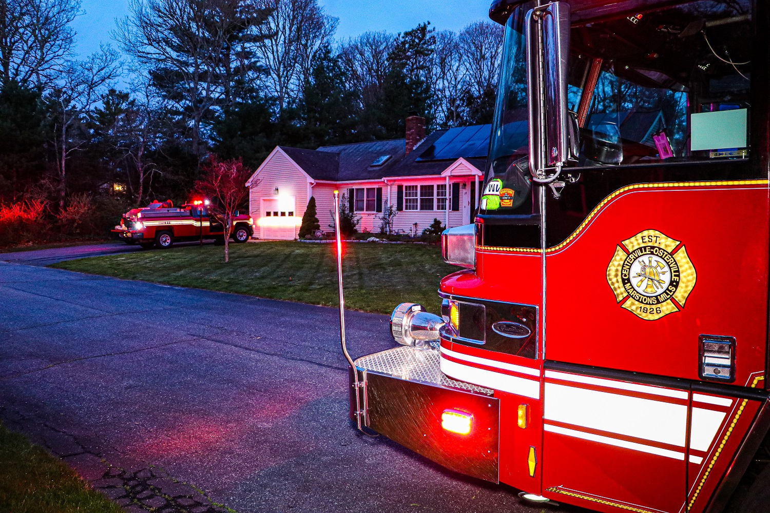 OSTERVILLE – A neighbor called firefighters after looking out to see flames coming from the rear of his neighbor’s home at about 5:10 a.m. this morning on Galleon Way. What was initially thought could have been a house catching fire, turned out to be a storage shed and surrounding brush. Crews arrived and quickly knocked down the flames before beginning to overhaul the charred remains. As of 5:55 a.m., C.O.M.M. Firefighters were in the process of picking up and clearing the scene…