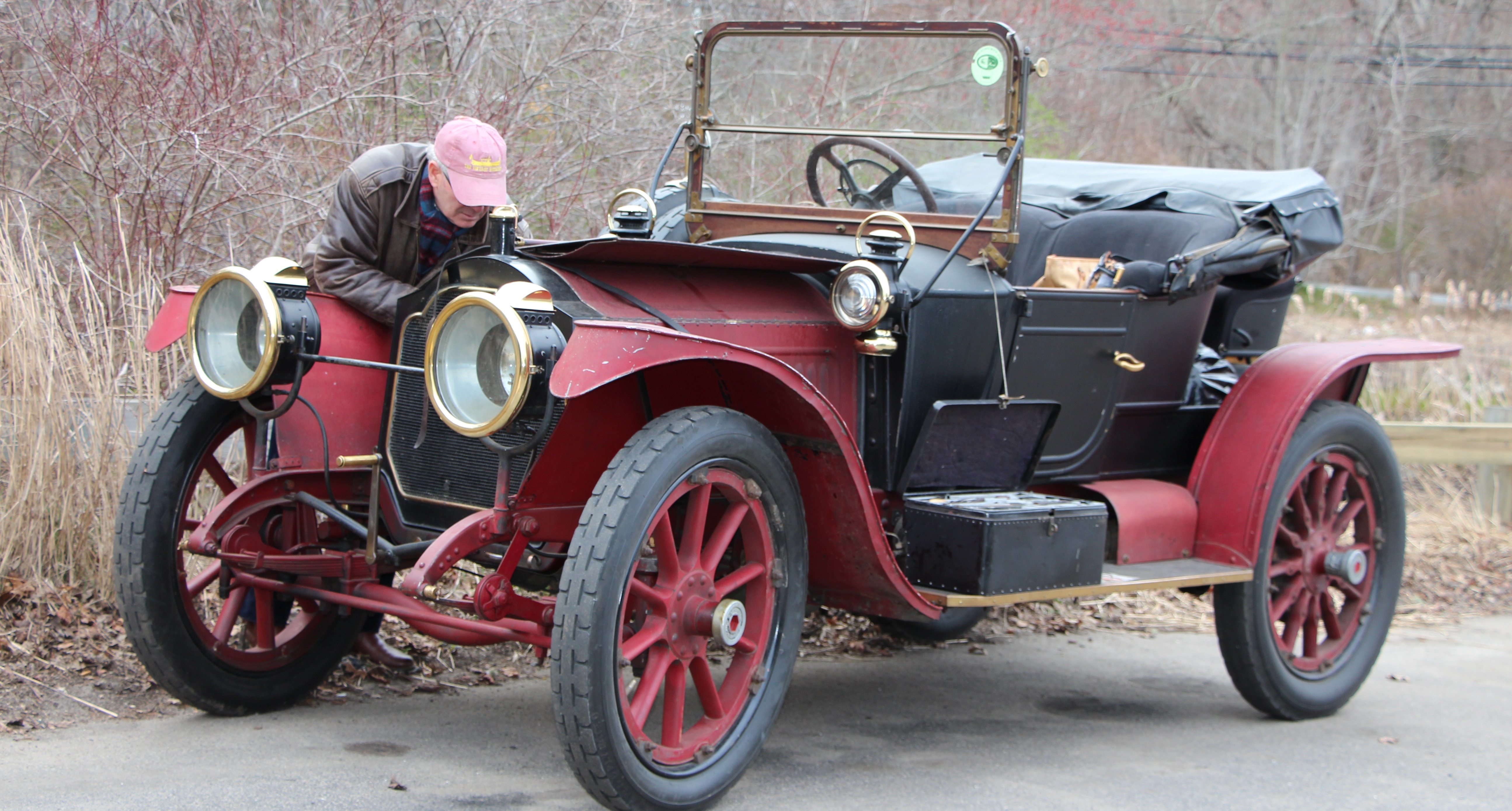 Above photo: John from New Jersey tops-off the radiator of his 1914 Cadillac… notice the cool copper pipes!