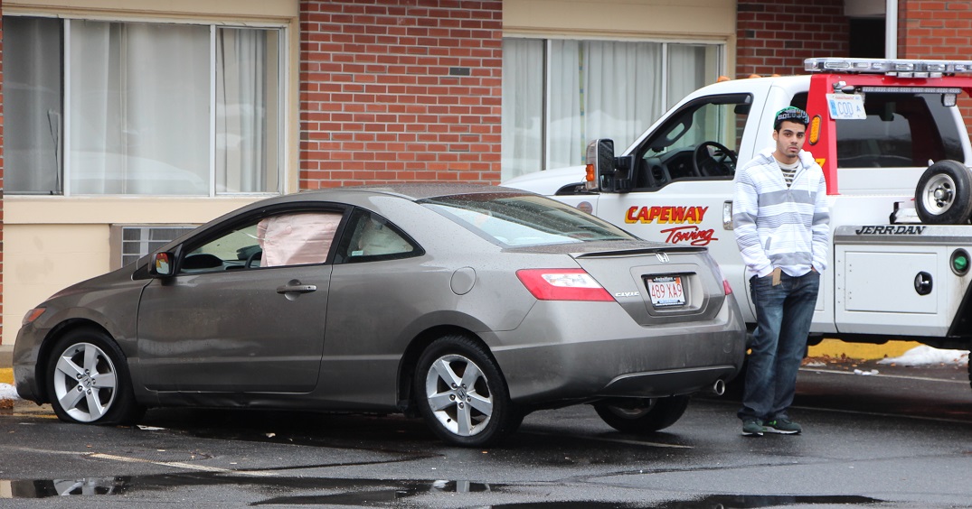 Hyannis – A car owner called Barnstable Police this morning claiming that someone had stolen his vehicle during the overnight. He also claimed the thief got in an accident, seriously damaged his vehicle and then returned his vehicle to its exact parking space outside his room at the International Inn.