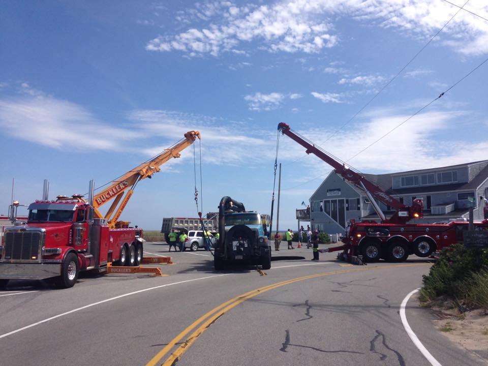 Sandwich Firefighters responded to a large truck stuck in a sinkhole on Town Neck Road this morning…
