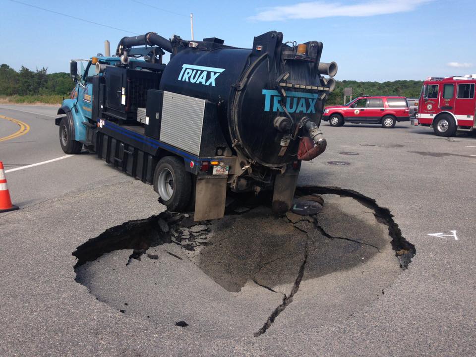 PHOTOS: Basin maintenance truck vs. Sandwich sinkhole…