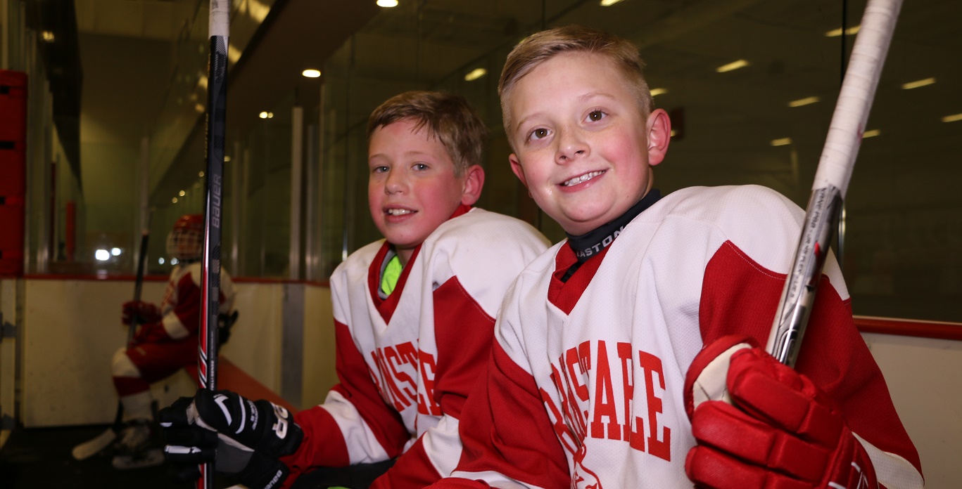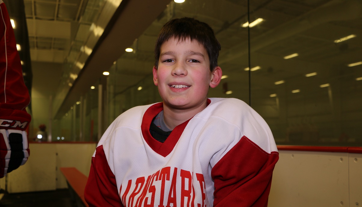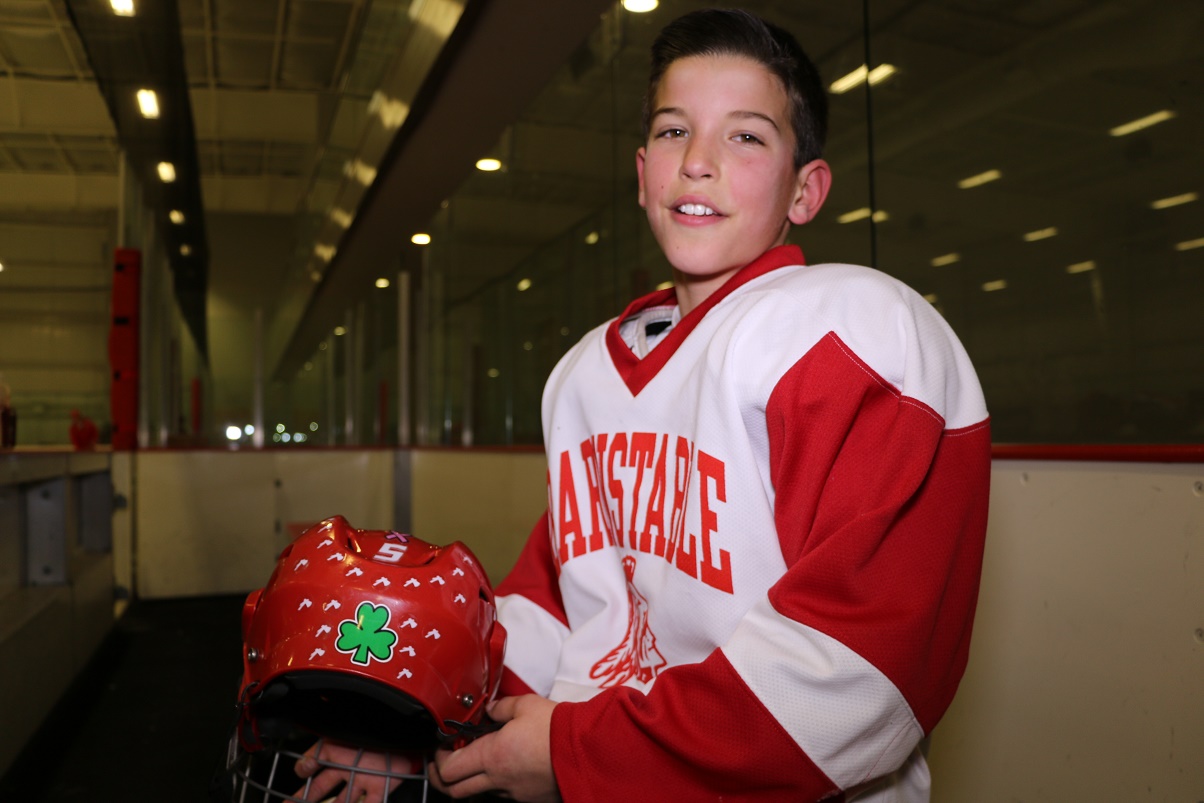 Above photo: [Courtesy – photo by Terri Corbett] Zak Baxter, reluctantly missed the playoffs due to a concussion. His teammates rallied behind him and carried him down the ice in their hearts.