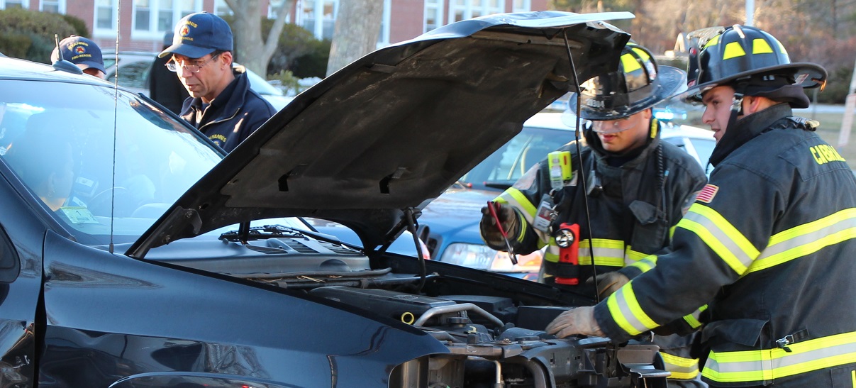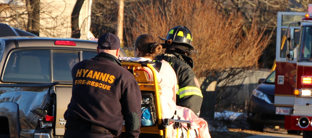 Above photo: Hyannis Firefighter paramedic Joseph Mendes assesses the condition of one of the drivers…