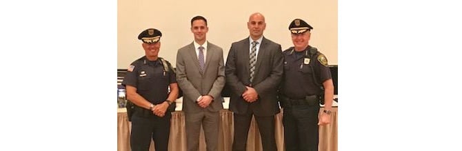 The very prestigious Massachusetts Coalition of Police Platinum Award was presented this morning to Yarmouth Police Department Proactive Anti-Crime Unit Officer’s Sean Geary and Christopher VanNess at the Massachusetts Coalition of Police 39th Annual Convention in Hyannisport.