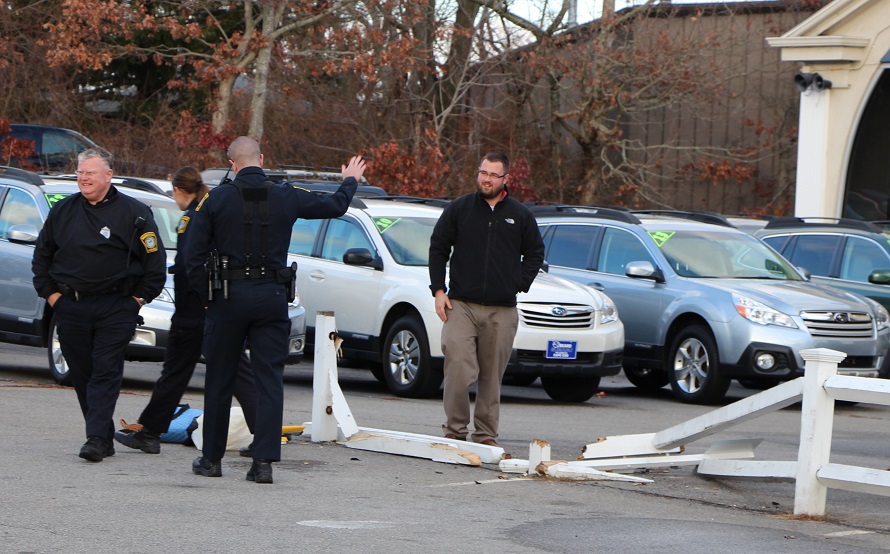 Above photo: An elderly woman caused property damage as she suddenly drove through a fence at Dick Beard Chevrolet and Subaru…