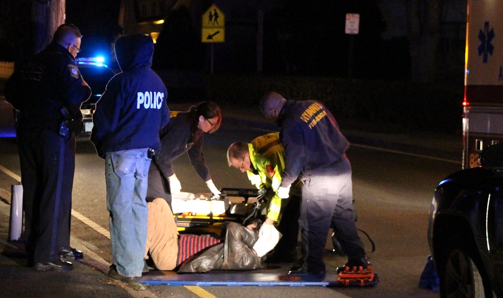 Above photo: Early Sunday morning a man was found laying in the middle of South Street and bleeding from the head…