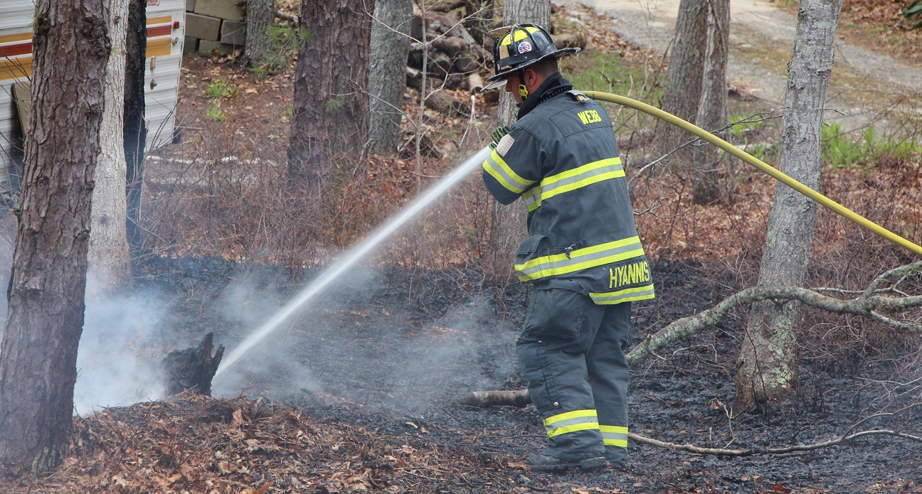Above photo: Firefighters had to quickly respond to a permitted burn in the area of West Main Street in Hyannis this past Saturday. The burn had grown out of control and became a brush fire. A COMM ambulance crew and a Barnstable Patrolman were first on scene after observing heavy smoke. The fire was quickly extinguished and the residents were reminded of the permit regulations which ensure safe burns. NOTE: According to Hyannis FD, this coming Friday is the last day of the burn season.