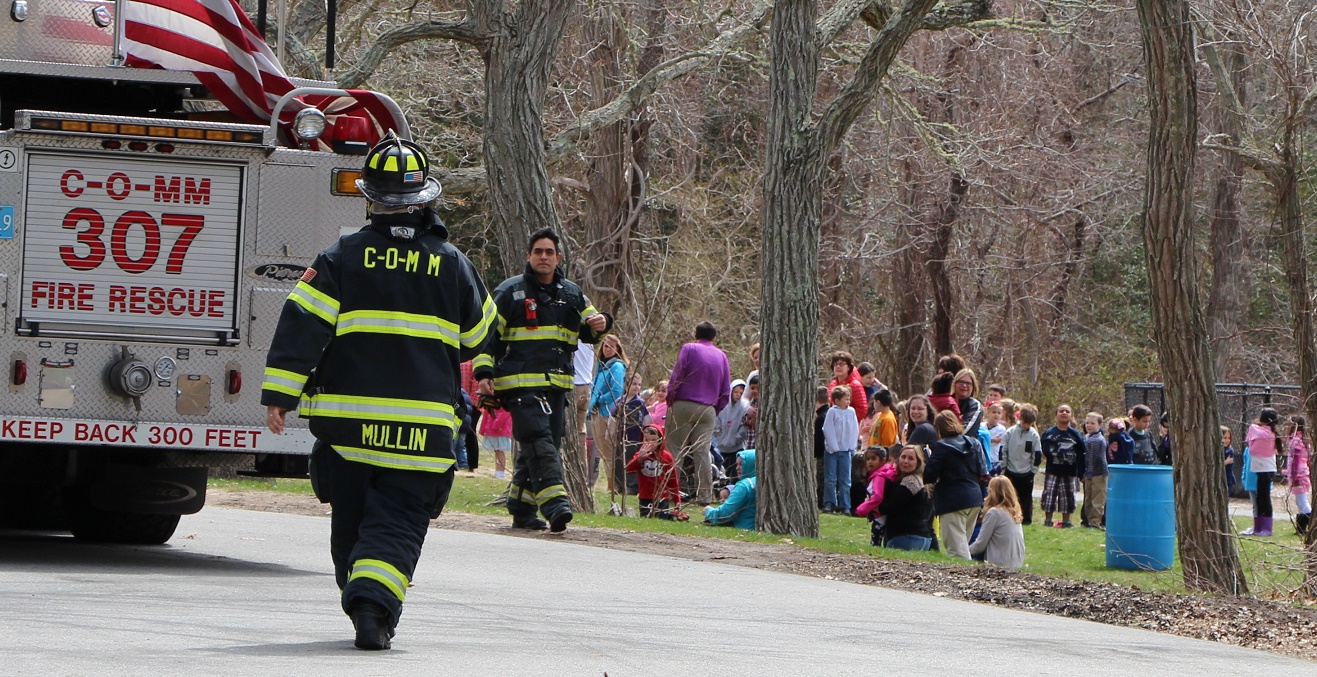 Above photo: Young children and teachers got some fresh air and an unexpected break from classes when a “cooking incident” set off fire alarms, forcing an evacuation of the Centerville Elementary School yesterday. Firefighters ventilated the building and all students were back on task in the classrooms within about 15 to 20 minutes after the alarm sounded. (I don’t know about you, but when I was that age, I lived for any excuse to be outside and out of class…)