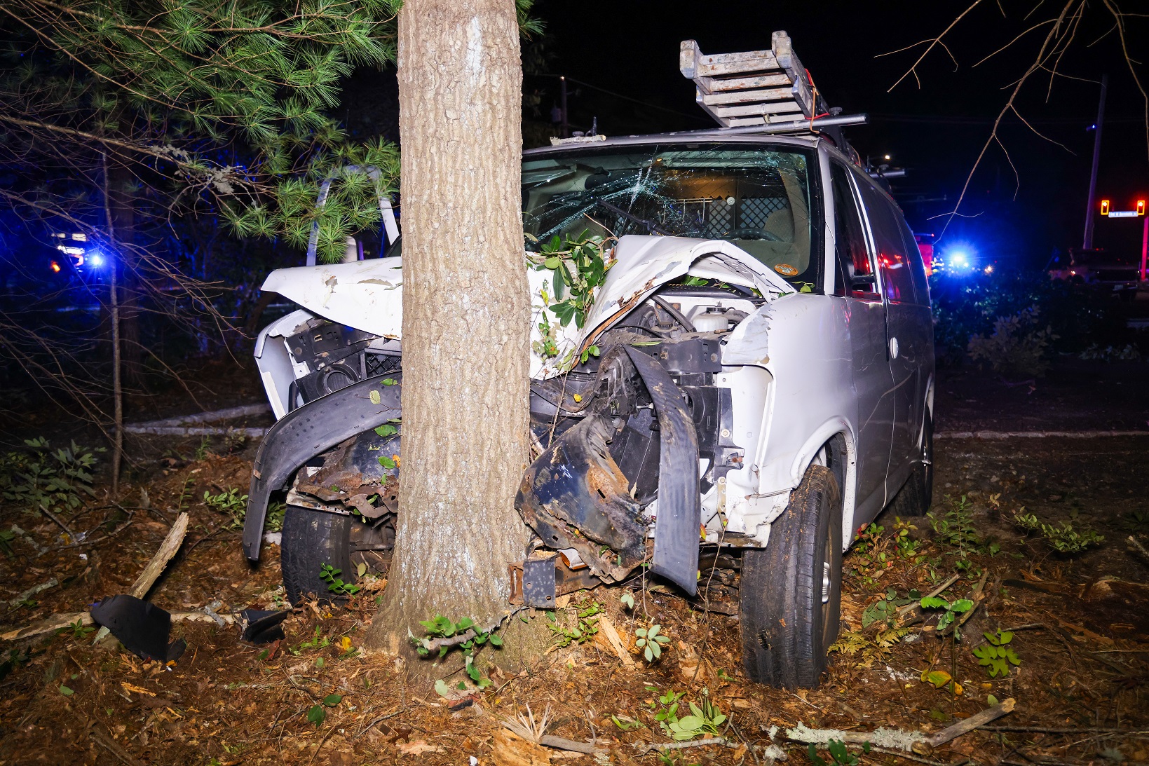 OSTERVILLE, MASSACHUSETTS – [HN photo notes] – A serious crash in Osterville Wednesday evening left one person injured and prompted the closure of Route 28. The incident occurred around 8:00 p.m. at the intersection of Route 28 and Osterville/West Barnstable Road, where a van left the roadway and collided with a tree.