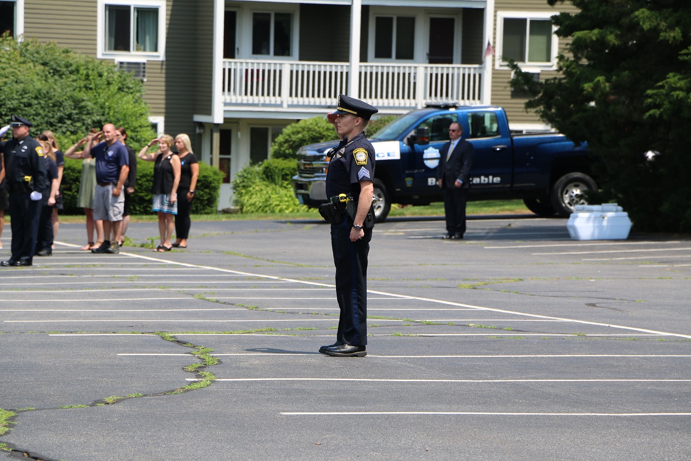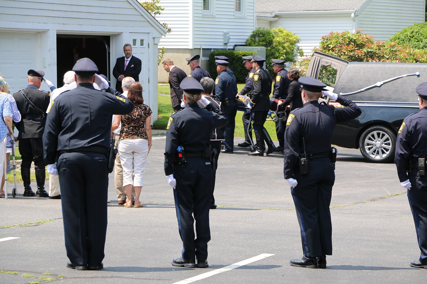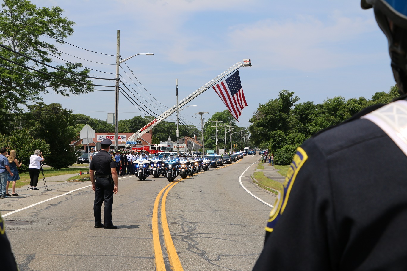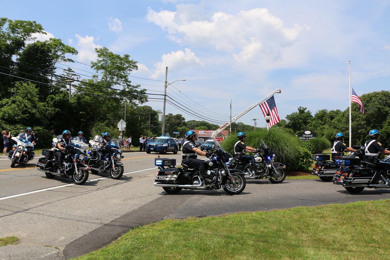 The following HN Photos show the scene today where members of the Barnstable Police Department brought the body of Sgt. Jason Sturgis back from the medical examiner’s office in Boston to the Doane, Beale & Ames funeral home on West Main Street in Hyannis. Sgt. Sturgis, a 19-year-veteran of the BPD, died unexpectedly this past Saturday evening. Sergeant Sturgis was married with three young children at the time of his sudden passing. He was just 42-years-old.