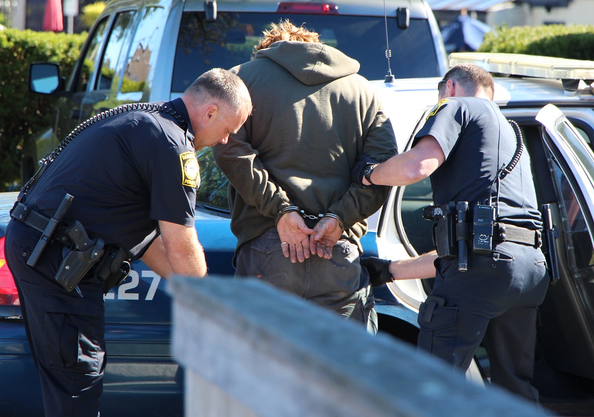 Hyannis – Multiple police squad cars converged on a black Dodge Neon this afternoon for a domestic disturbance where a boyfriend allegedly backed a car over his girlfriend during an argument which began in the West Main Street area.