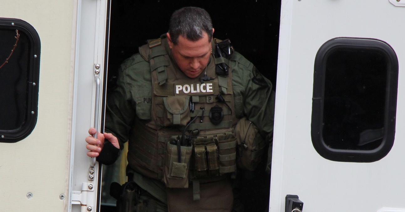 About 8 or 9 patrol units lined the street when the SWAT team commander arrived about halfway through the standoff.