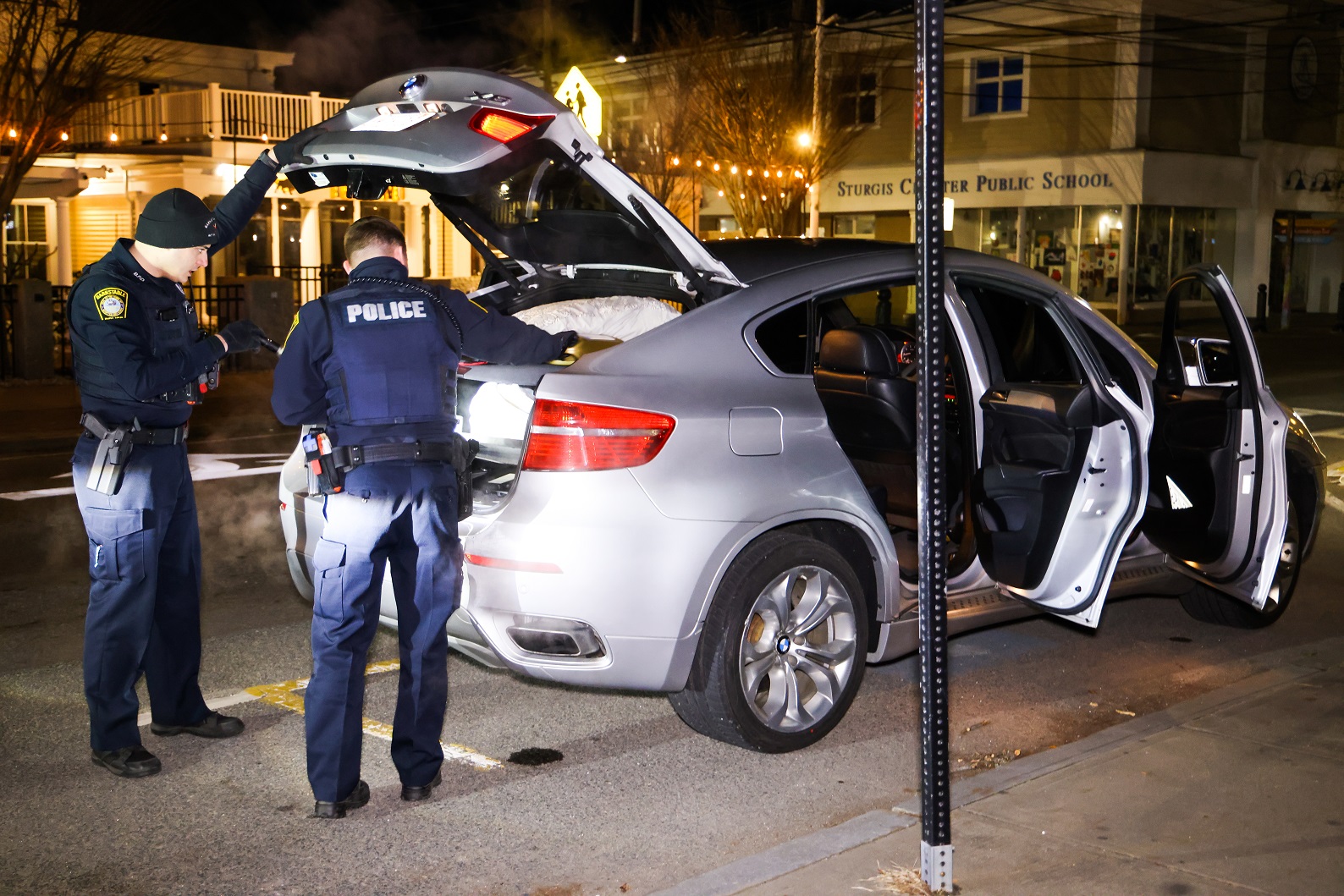 DEVELOPING (ABOVE HN PHOTOS): At around 10 pm last evening, an alert Barnstable plainclothes officer stopped a BMW X6 on Main Street, near the Sturgis Charter School. He made contact with the driver and eventually noticed a handgun tucked behind the driver’s seat. The driver reportedly did not have a license to be in possession/carrying a firearm…