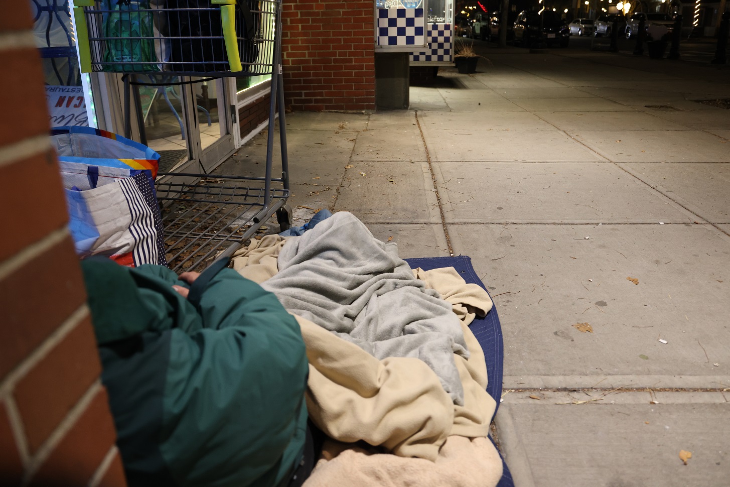 The whole thing was quite a bizarre and offensive juxtaposition last evening. On one hand, you have a healthy young man in his prime working years driving around in a luxury car while allegedly in possession of a firearm without a license… a serious crime. On the other hand, you have a well-spoken, polite and sober woman (who says she does not drink or do dangerous drugs… in fact, I’ve never seen her drunk or on drugs in the short time I’ve known her), who tells HN she used to work as a nurse before becoming disabled with serious health issues… and here she is next to a storefront with her luggage, making her bed, and preparing for an evening on the cold cement sidewalk… and with a nor’easter approaching, no less. She prefers the well-illumined storefronts because she’s not used to the streets and feels a little safer… in hopes the police will be able to see her while driving by.