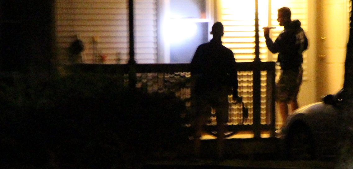 Marked and unmarked police vehicles parked about a block away from the Yarmouth Road address. Officers, several with recent military experience, approached under darkness with long rifles or sidearms drawn.