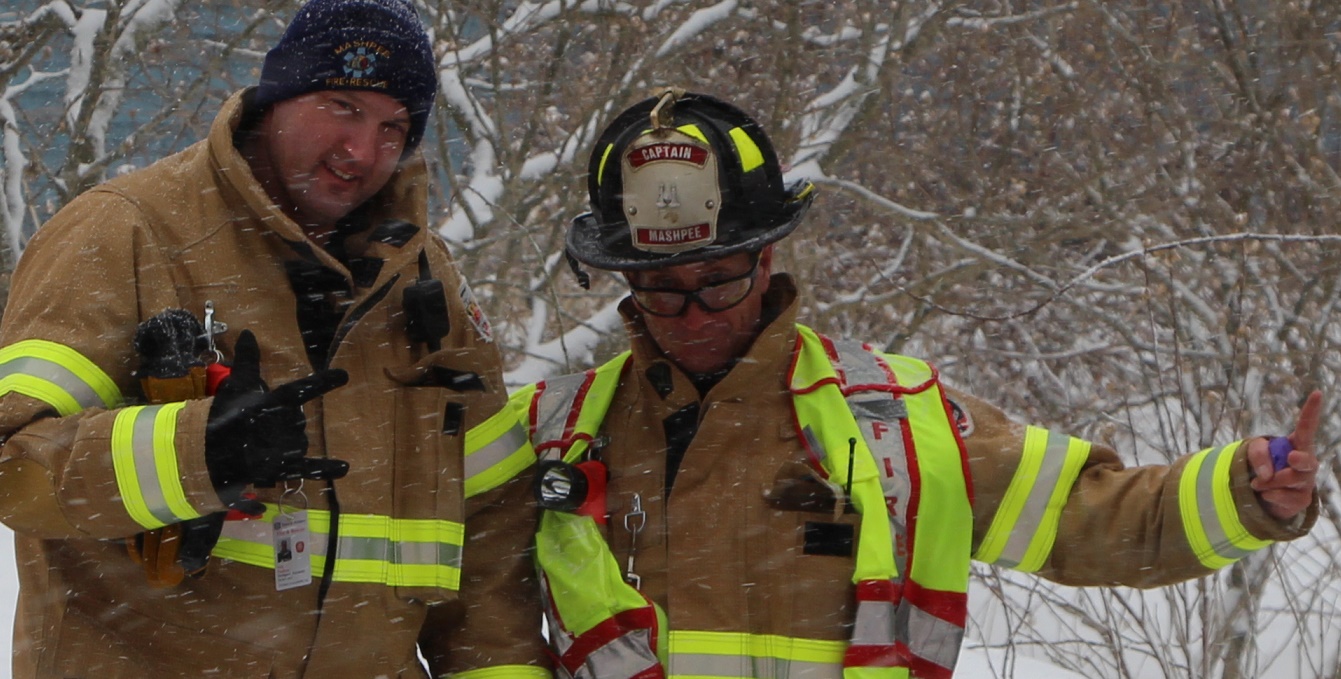P.P.S. -- [Photo] Two good souls of the Mashpee Fire Department managed to briefly pose for a moment of levity in between the snowflakes, after seeing to the injured and cleaning up the scene... Be safe out there and thank you for all that you do :)