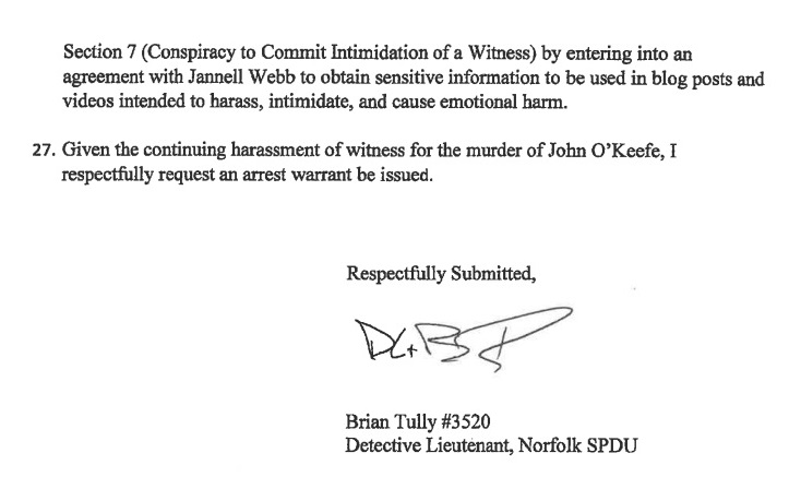 The statement of facts filed by Brian Tully #3520, Detective Lieutenant, Norfolk SPDU: