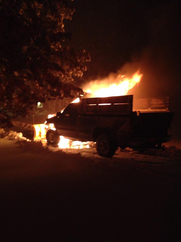 PHOTO: Sandwich firefighters battle fully involved snow plow truck fire last evening… (Photo courtesy of Sandwich FD)