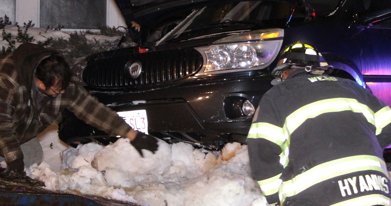 HYANNIS – The driver of a vehicle that went airborne after hitting one snow bank and landing in another is possibly looking at motor vehicle charges according to sources at the scene.