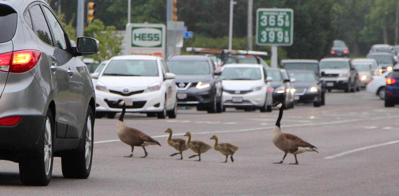 Top photos: Family of geese take their sweet time crossing, while HyTown commuters show an unusual degree of patience, tolerance, and respect…
