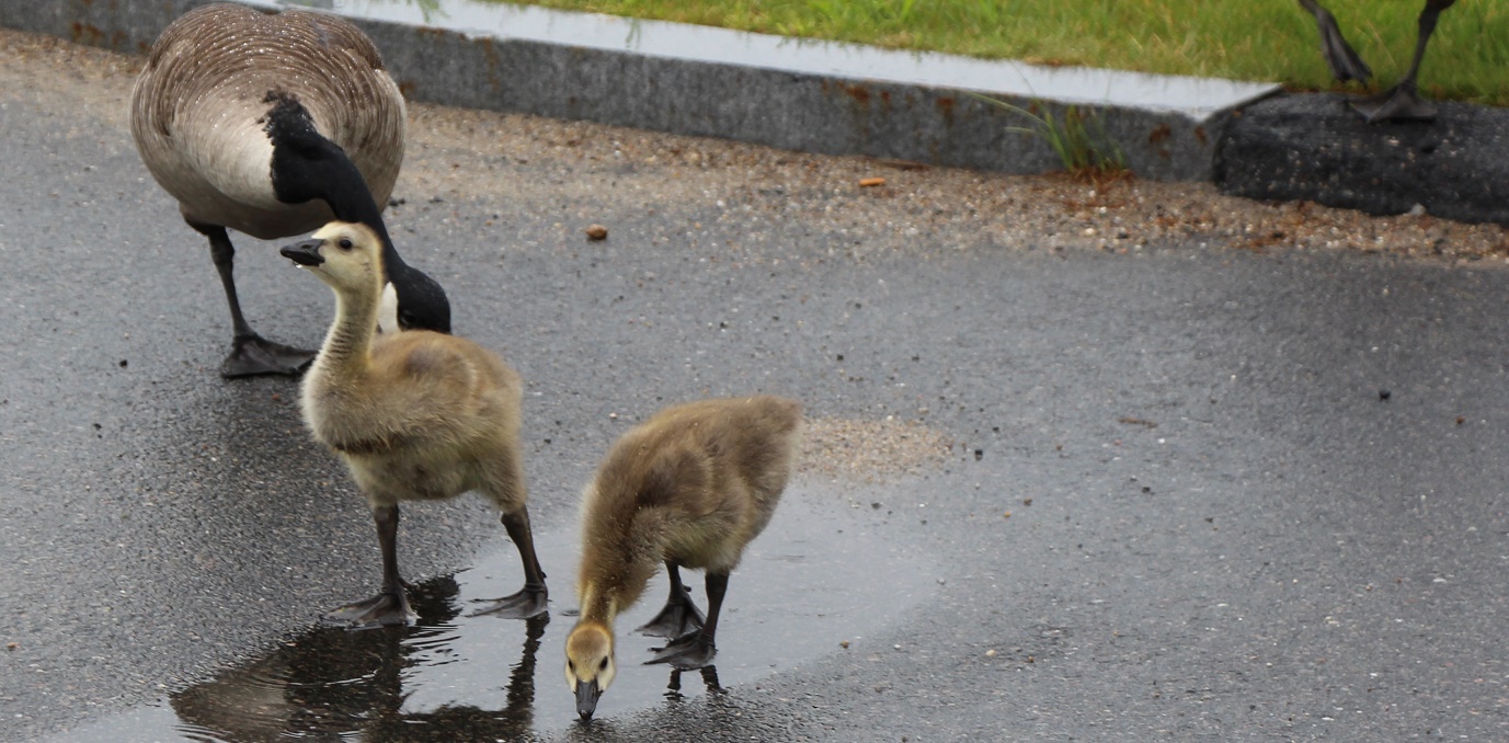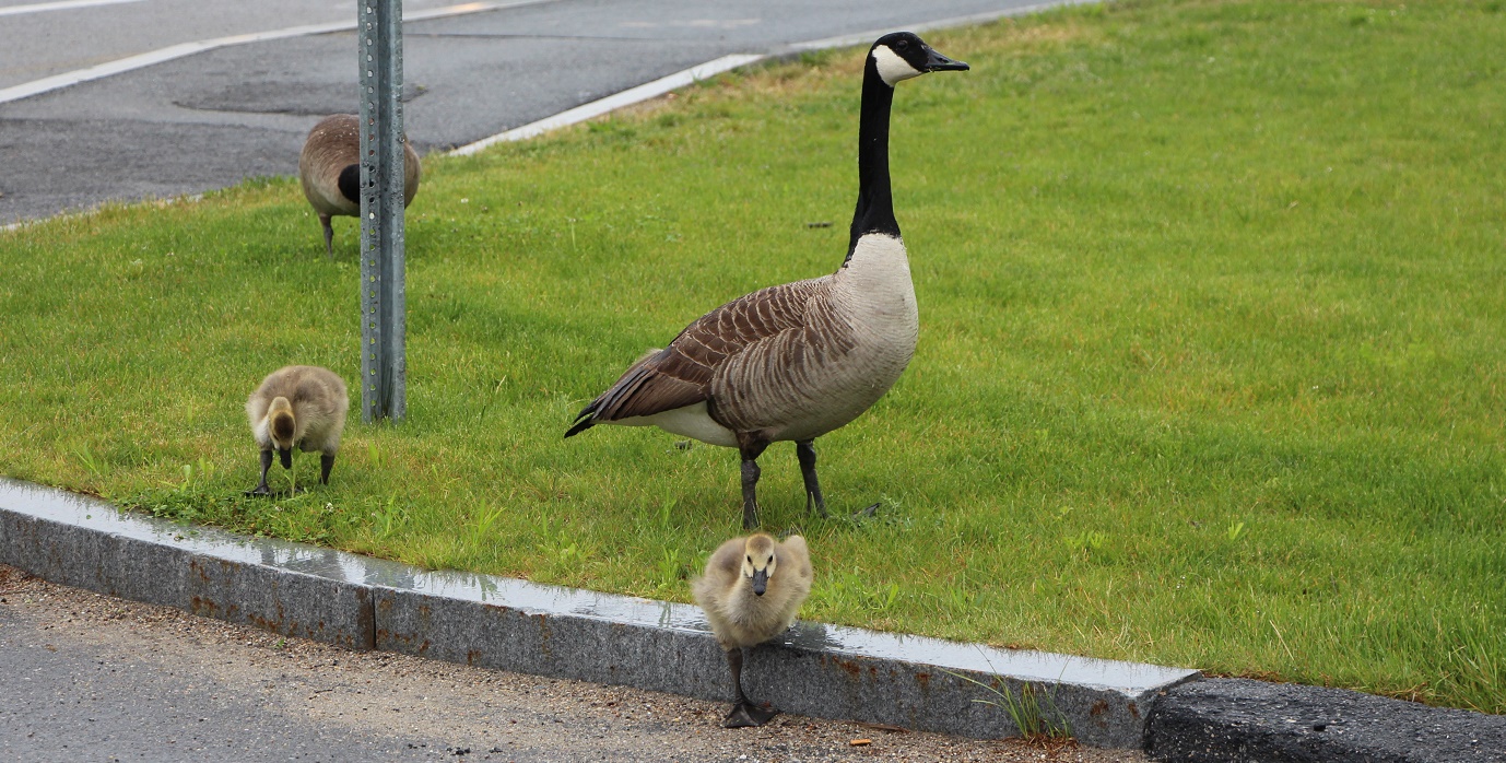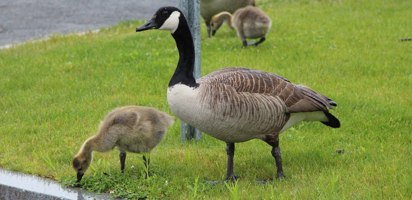Canadian geese are primarily migratory birds and they enjoy munching on fresh green blades of grass… and like humans, geese often find the grass much greener on the other side of the street…
