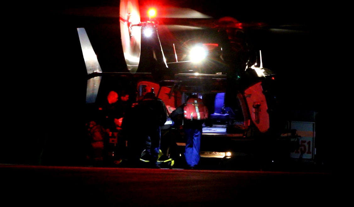 The following footage begins right after the patient was loaded into an ambulance at the scene. It then shows the vehicle and location of items belonging to the patient, as officers begin to reconstruct the scene… Minutes later, it shows the patient being loaded into the back of a helicopter behind the Henry T. Wing School on Water Street…