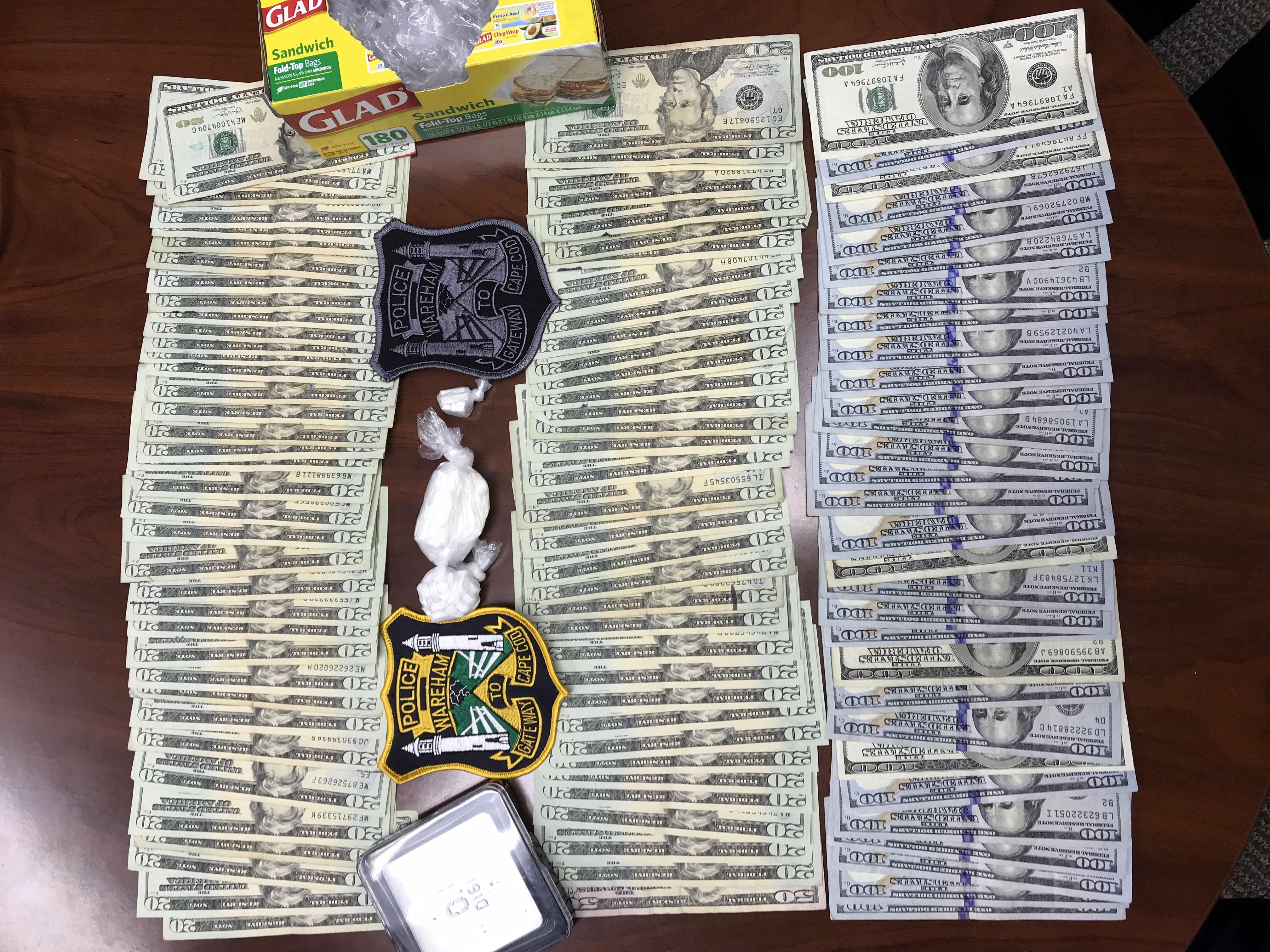 At about 5:00 p.m. Wareham Police detectives raided that location and confiscated 24.3 grams of a white substance believed to cocaine, multiple pills marked Xanax, Oxycodone, and several other items consistent with the distribution of illegal narcotics, including baggies, a scale and nearly $4,500 in cash.