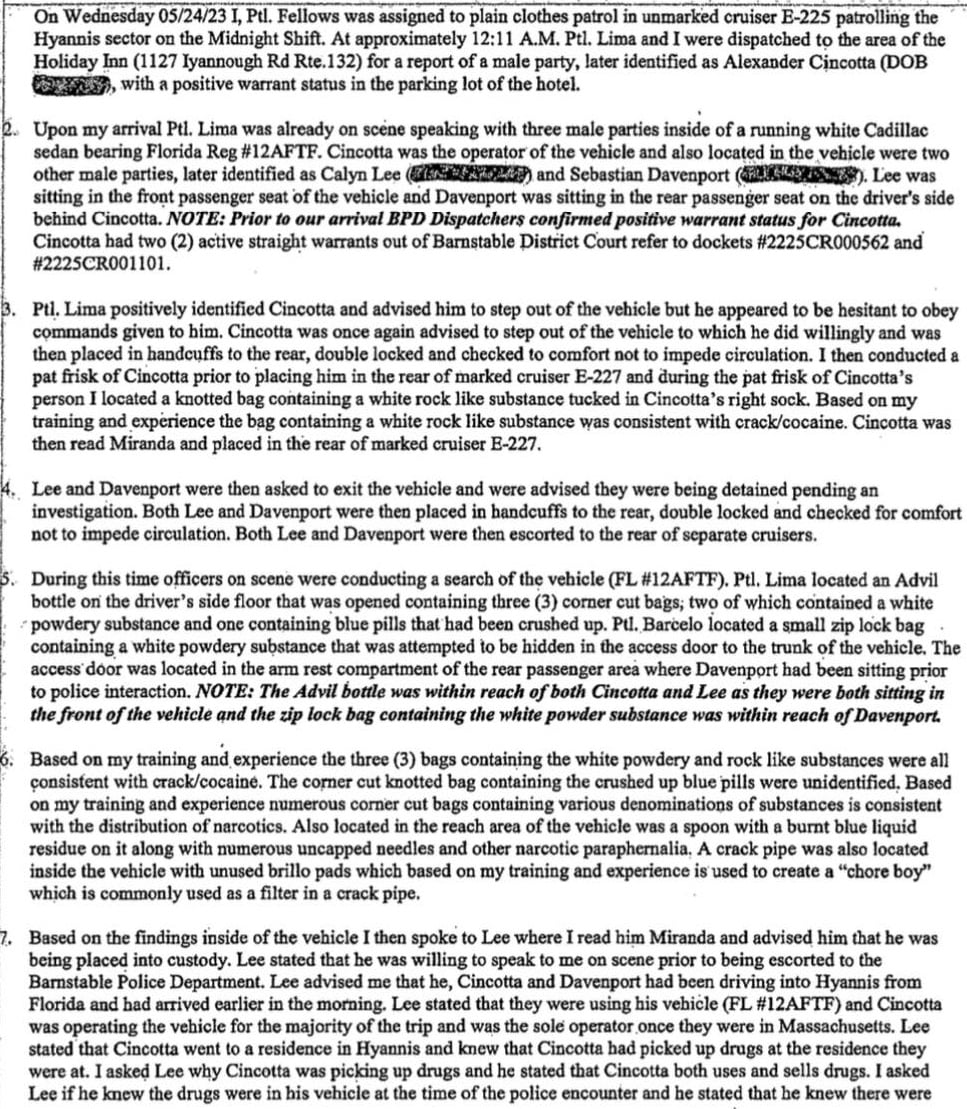 Shortly after midnight, members of the Barnstable Police patrol division quickly responded to the Holiday Inn, after receiving a tip that the Cadillac and its occupants were in the parking lot.