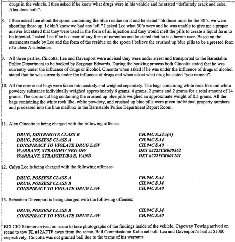 UPDATE – 5/30/23 – The following are copies of the actual police report narrative submitted by Patrolman Fellows of the Barnstable Police Department: