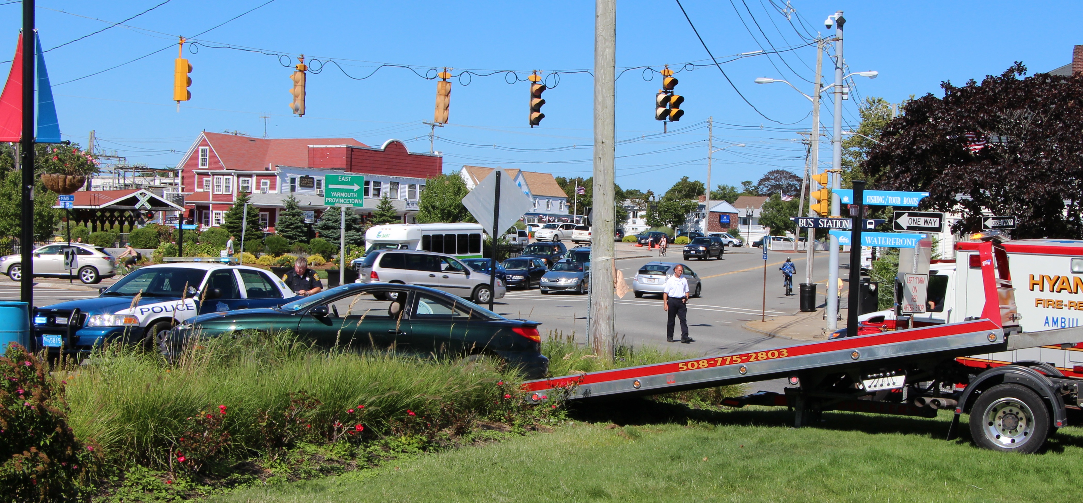 If it wasn’t for the lush plantings at the intersection of Main St. and Old Colony, there’s no telling how far the out of control vehicle may have traveled.